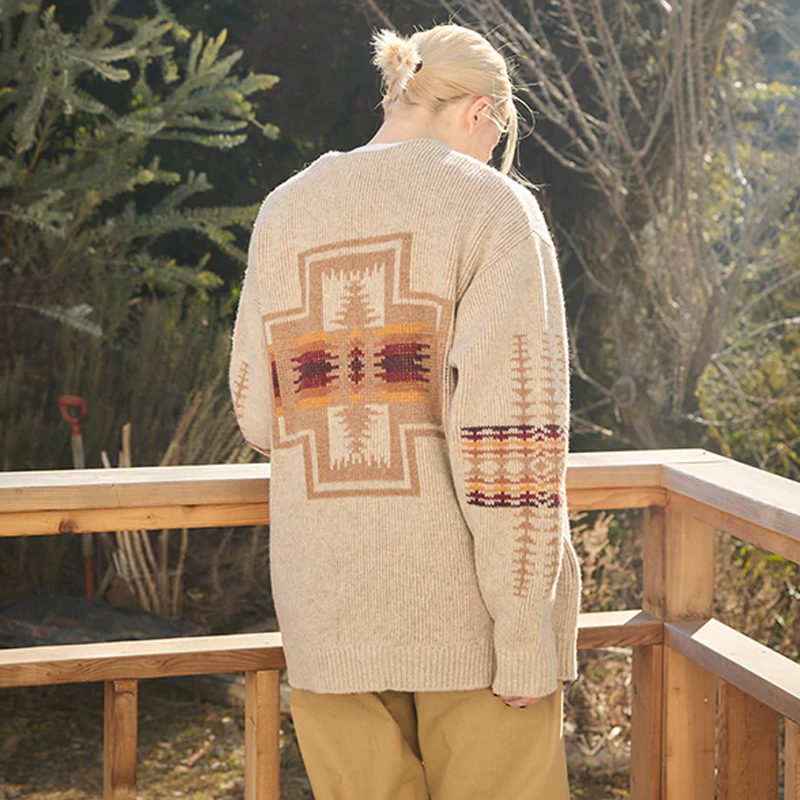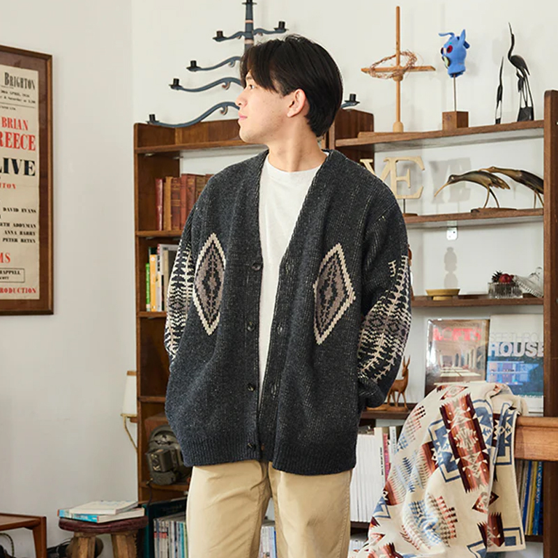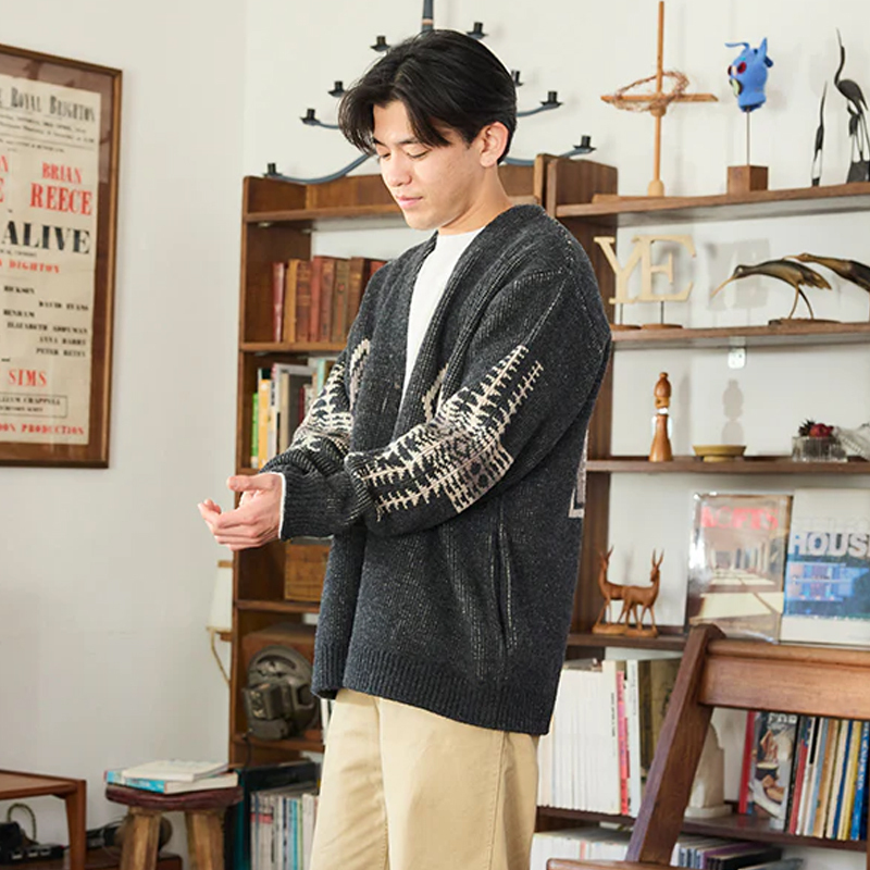 選用 英國 Shetland 羊毛 為主要材質,是經典中的經典羊毛開襟衫。Shetland 羊毛來自小型羊種,纖維細緻且富有自然光澤,穿上時能立即感受到毛料的柔軟與溫暖感。其耐用性與天然的防污特性也讓這件毛衣適合長期穿著、保養簡單且不易變形。