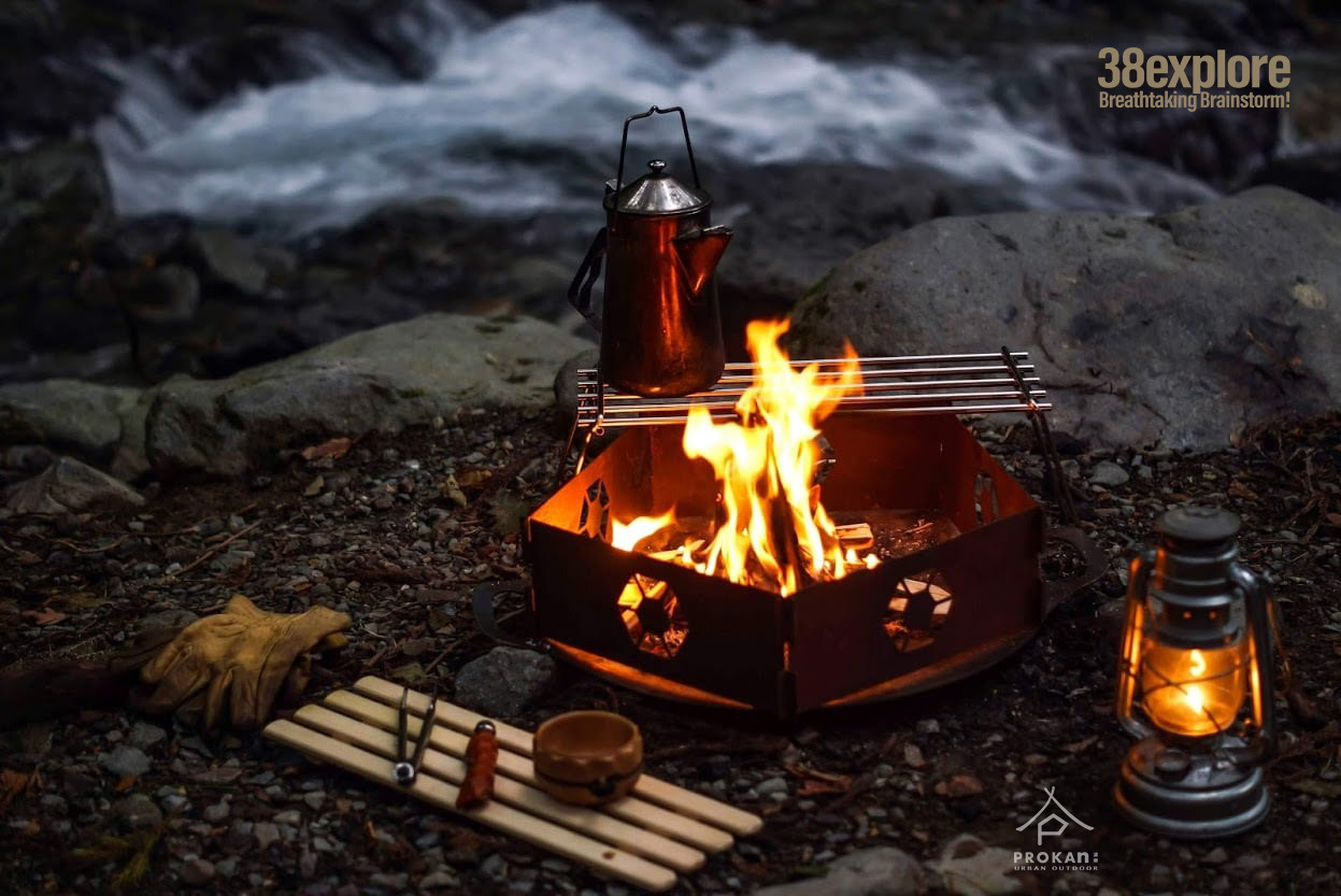 日本製造、質感獨特之多功能折疊式桌板/露營桌,根據不鏽鋼架安裝位置,可加寬桌板使用及吊掛空間;附兩側吊架,可搖身一變成為燈具吊架(適用吊掛輕量式燈具)。收納袋可安裝於桌下,增加收納空間。