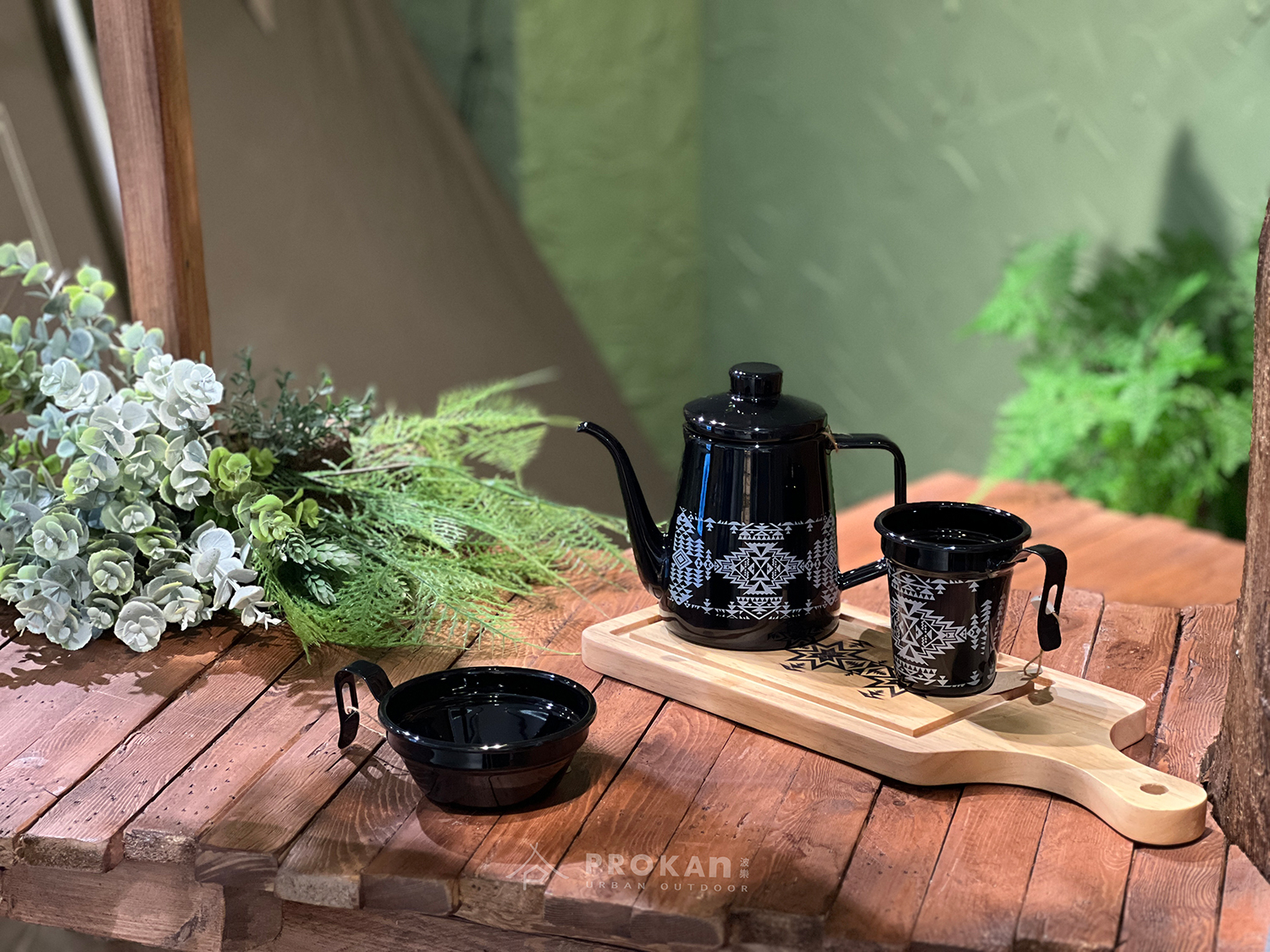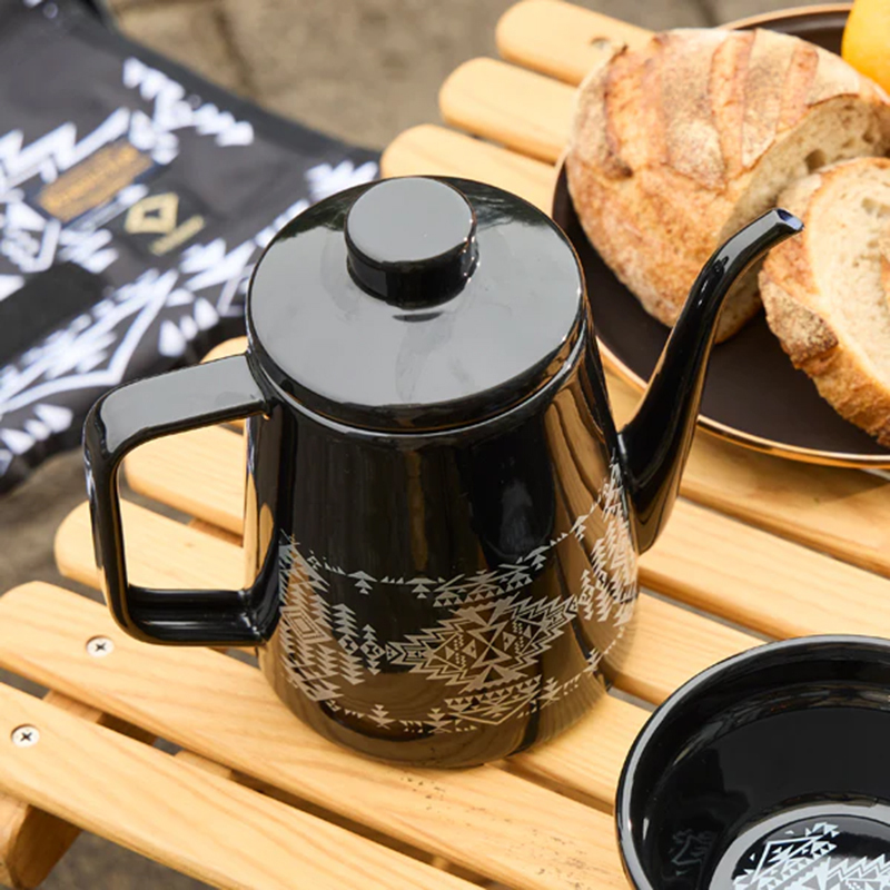 ◆黑白色系結合PENDLETON潮流圖騰的琺瑯咖啡手沖壺