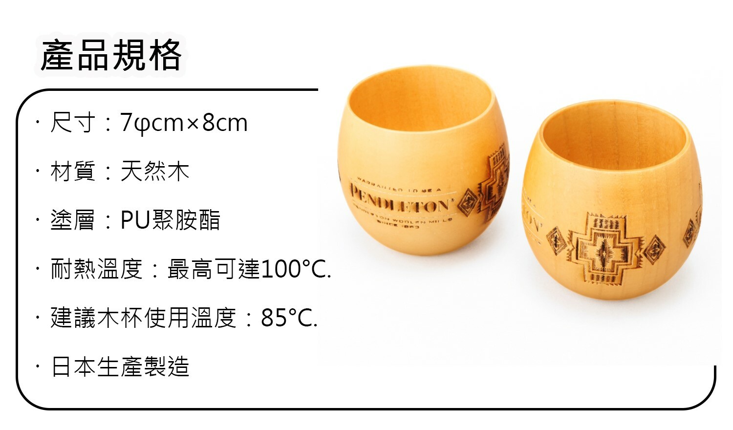 天然木材製成,帶有獨特PENDLETON原住民圖騰設計,給人溫暖的感覺。輕便易攜、大小適中,拿在手中十分舒適,推薦給你在休閒時光或用來招待客人的好選擇之一。