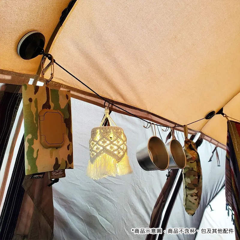 創新設計【ASOMATOUS】3Way Adjuster 三向調節繩組,僅需按一下按鈕即可輕鬆調整長度,調節繩兩端附有反光效果的登山扣,最高可承受達413kg重量。