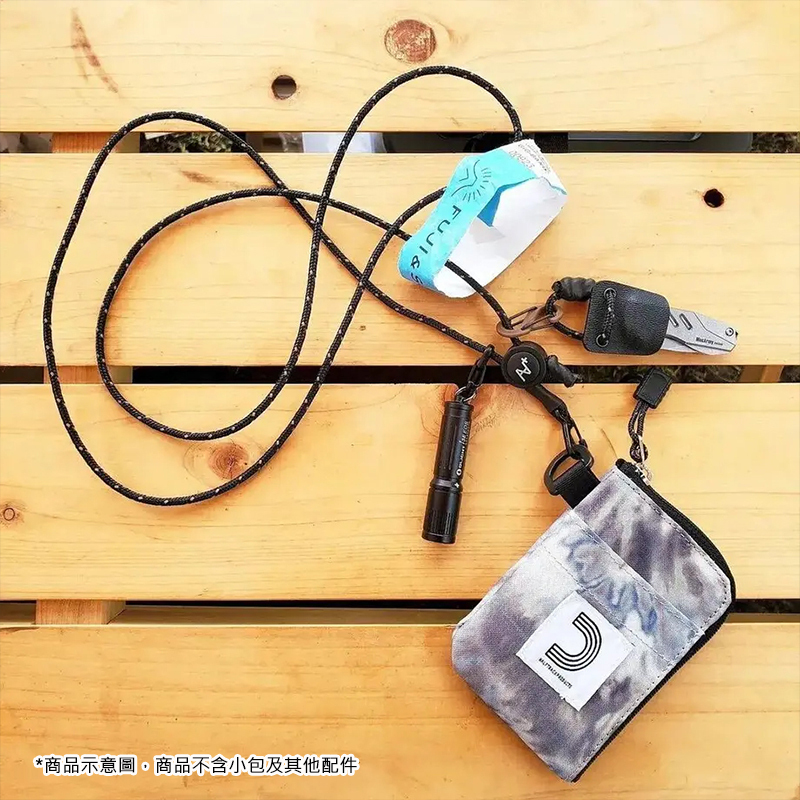 當你想增加繩子長度,按下調節鈕它會根據懸掛重量,半自動伸展;當你想縮短繩子時,你可用一手按下調節鈕,另一手則拉動繩子調節至所需長度。你也可將此調節繩組作為背帶使用,隨心所欲吊掛隨身物品。