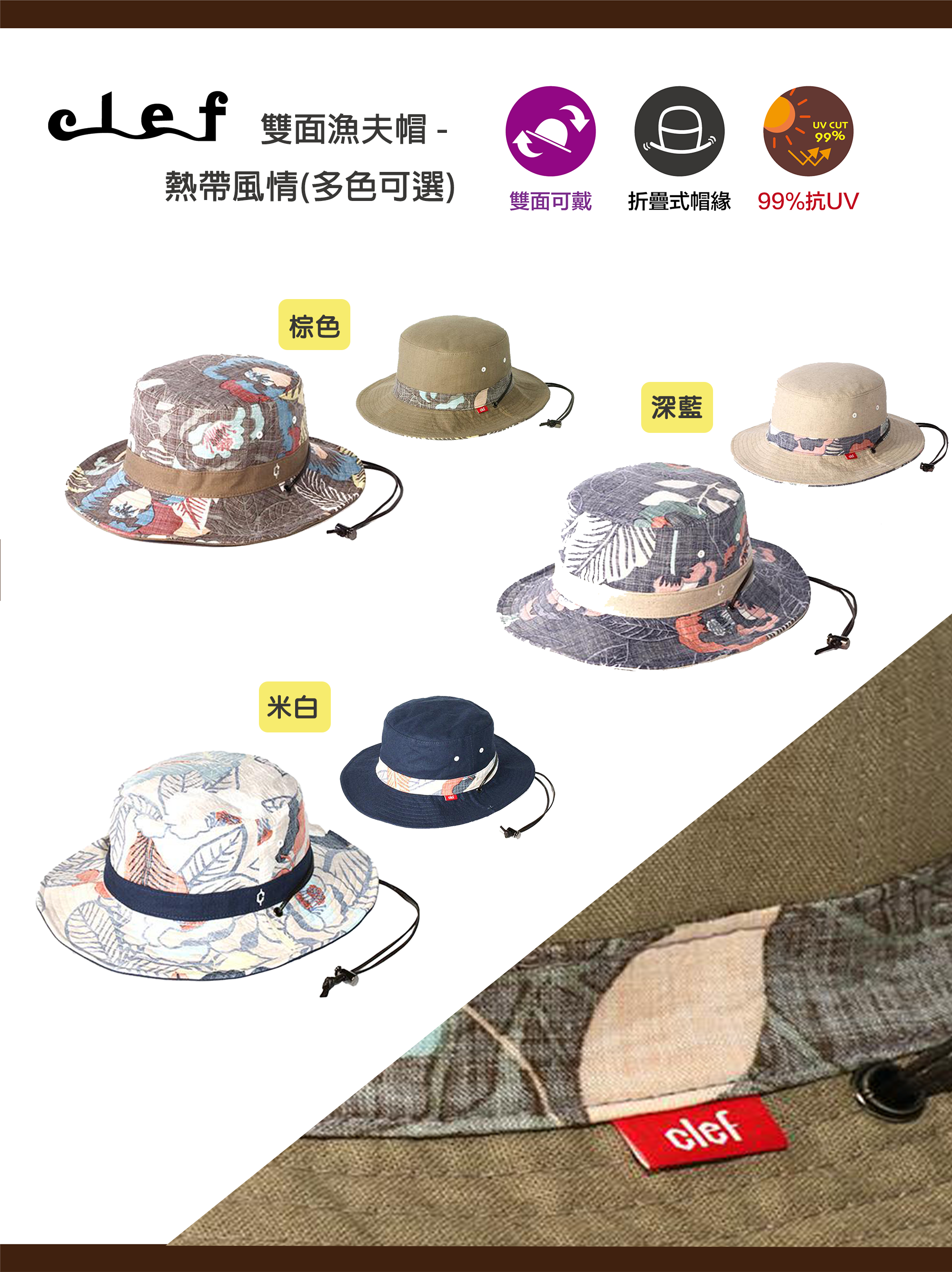 品名:Clef 雙面漁夫帽 –熱帶風情(多色可選)