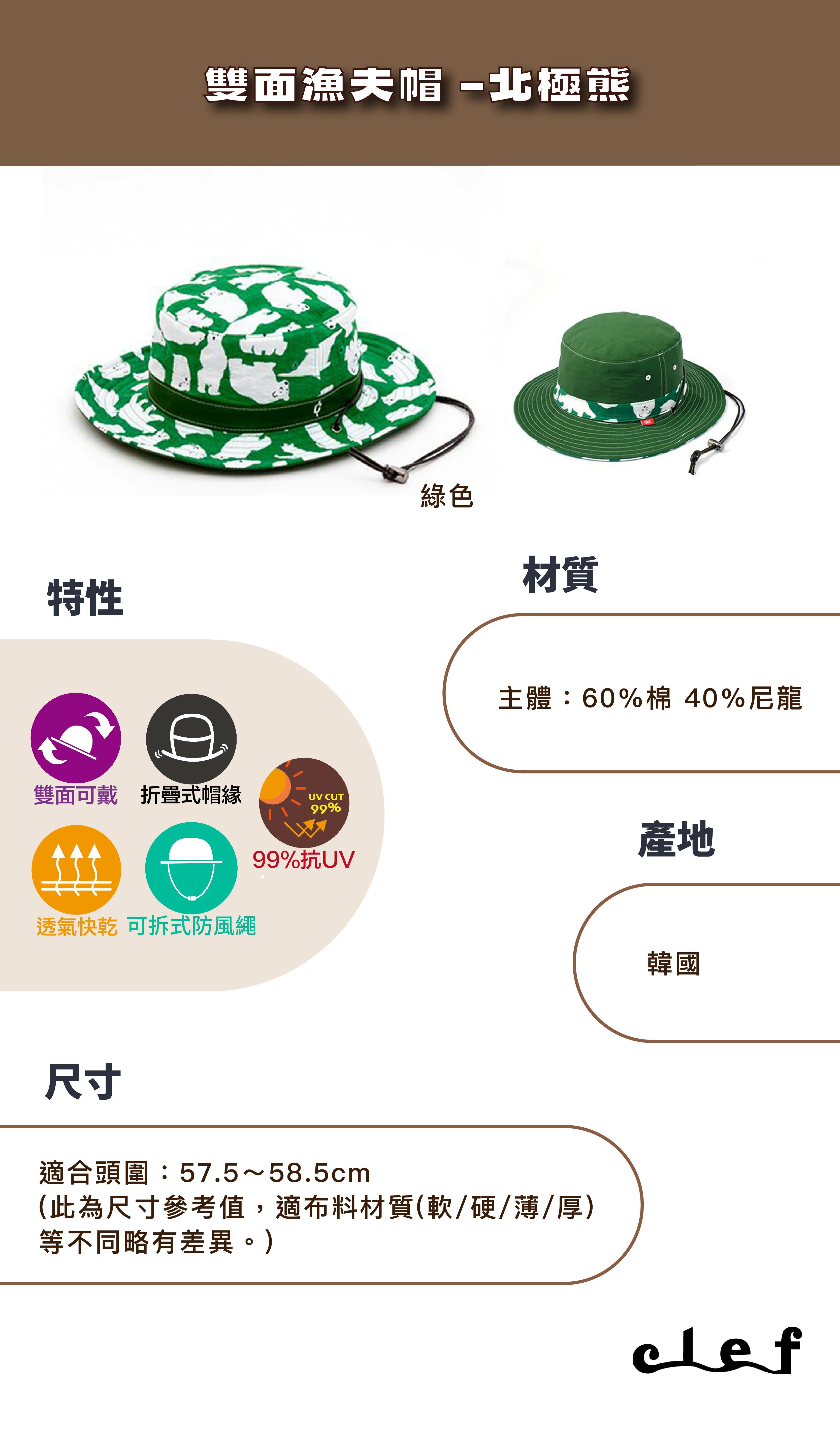 各種表情的北極熊組成一款款有趣又可愛的冒險帽!即便在炎熱的夏日,戴上滿佈北極熊的戶外帽款,也會帶來涼爽心情。