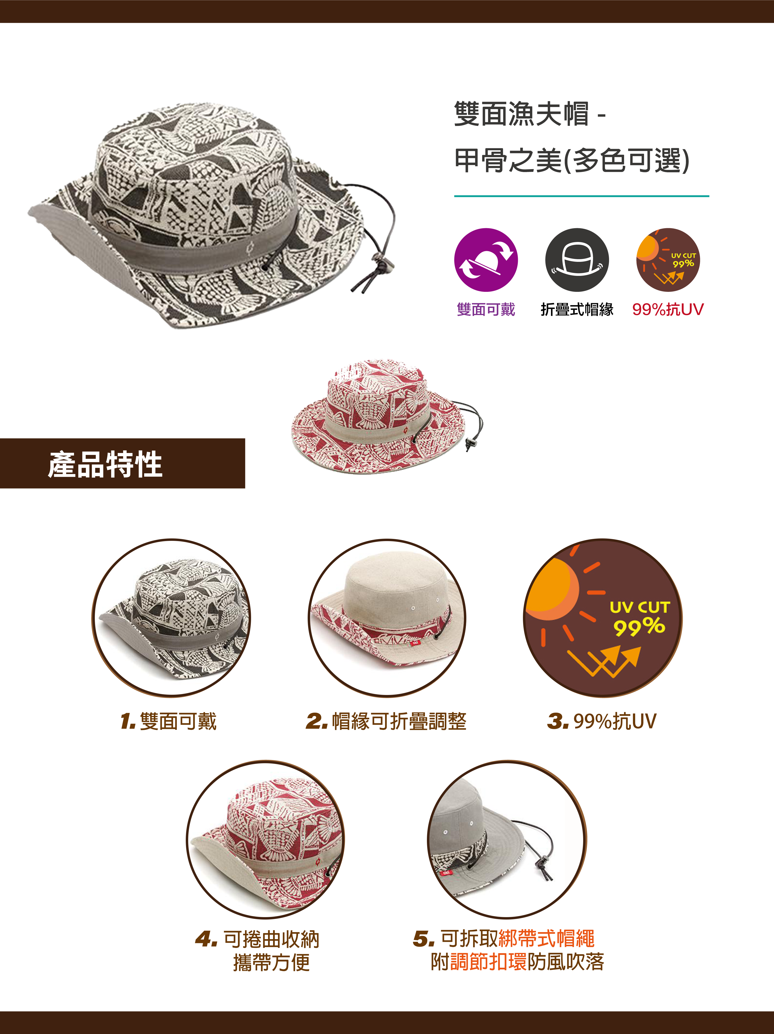 品名:Clef 雙面漁夫帽 –甲骨之美(多色可選)