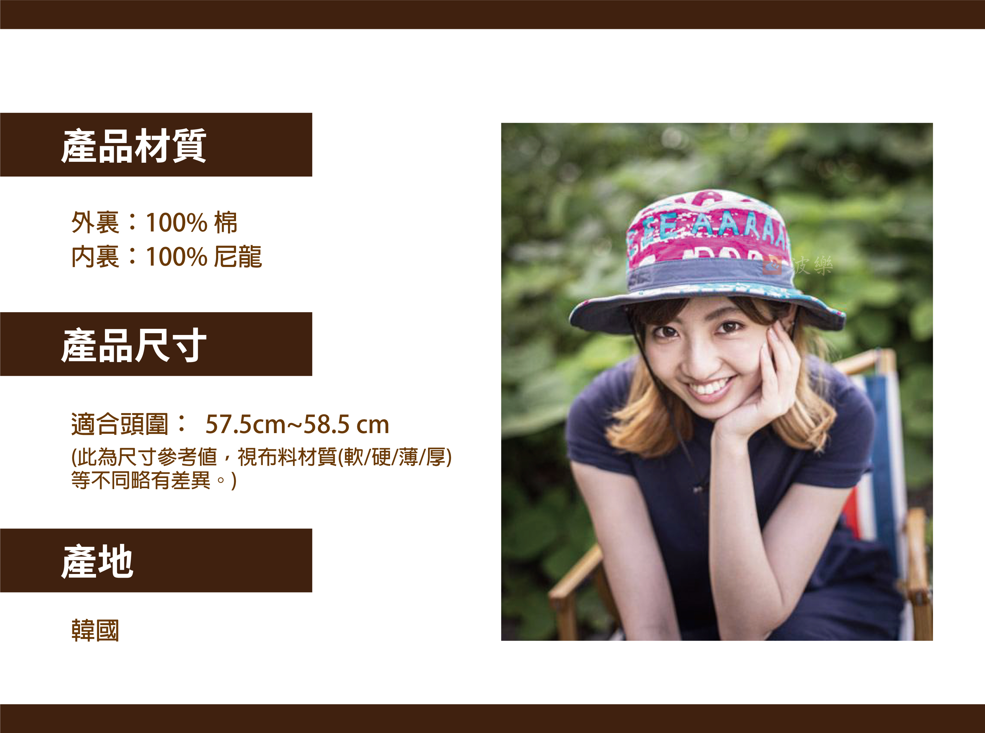 ※每帽圖案款式因布料裁切略有不同。