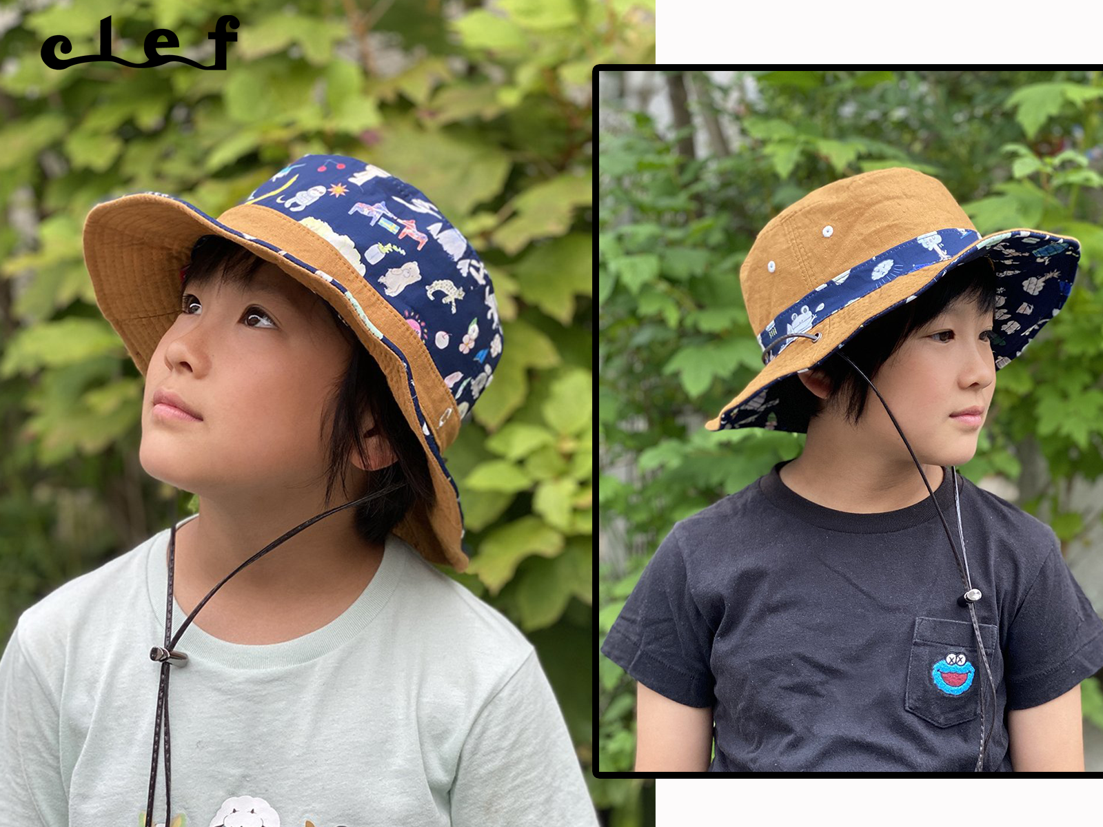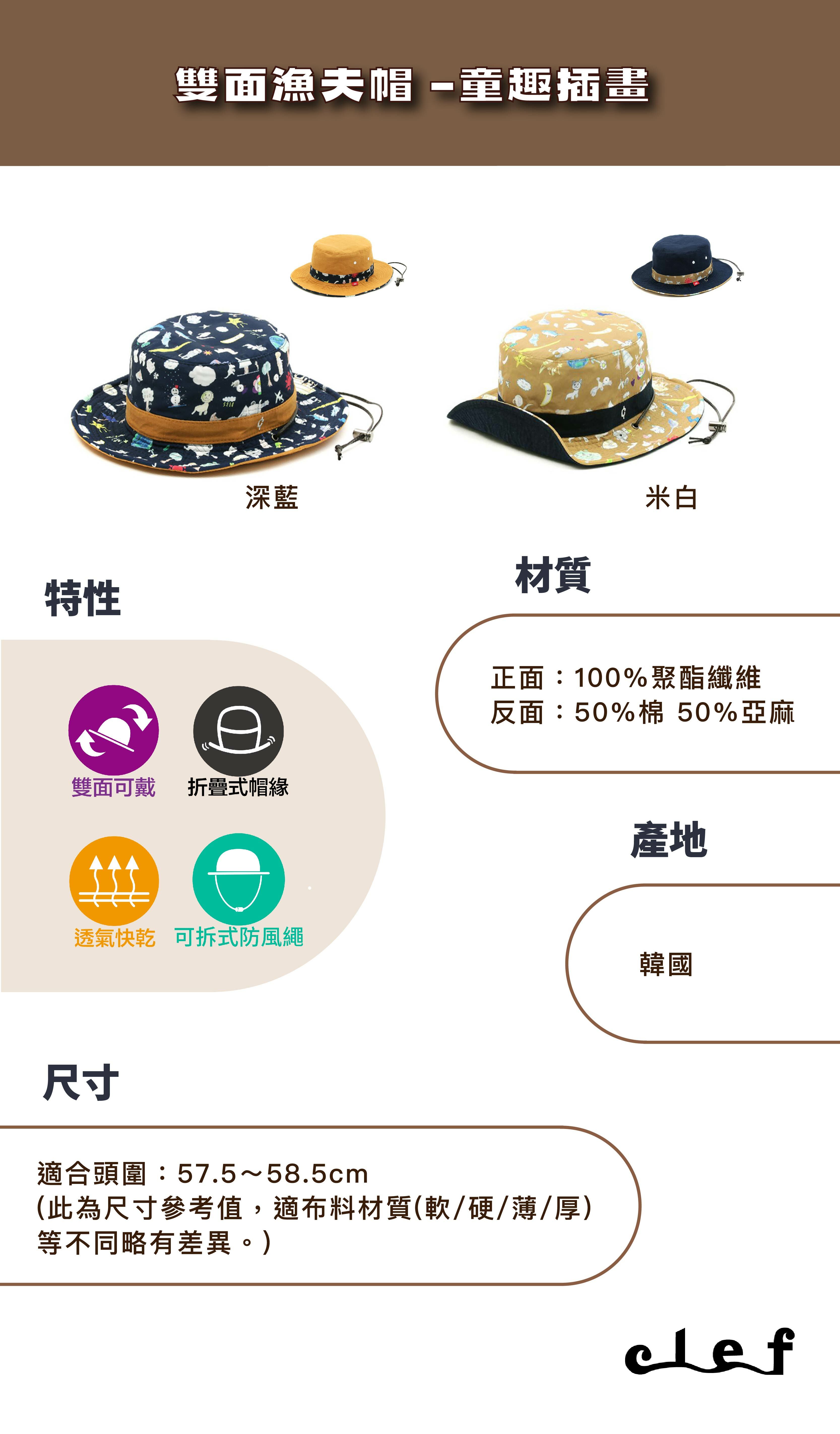 品名:Clef 雙面漁夫帽 –童趣插畫(多色可選)