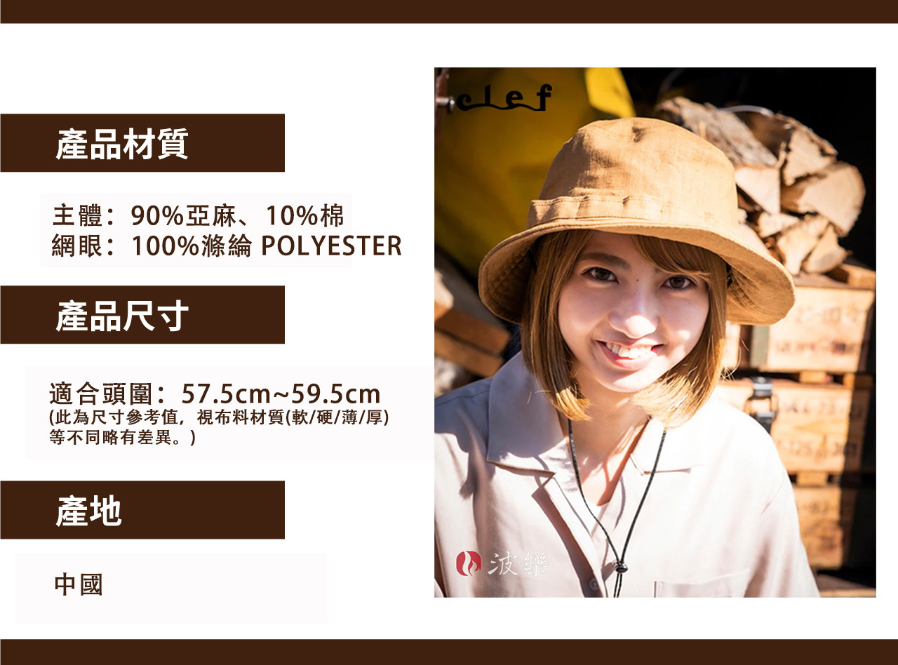 品名:Clef 網眼漁夫帽(單面)-亞麻系列(多色可選)