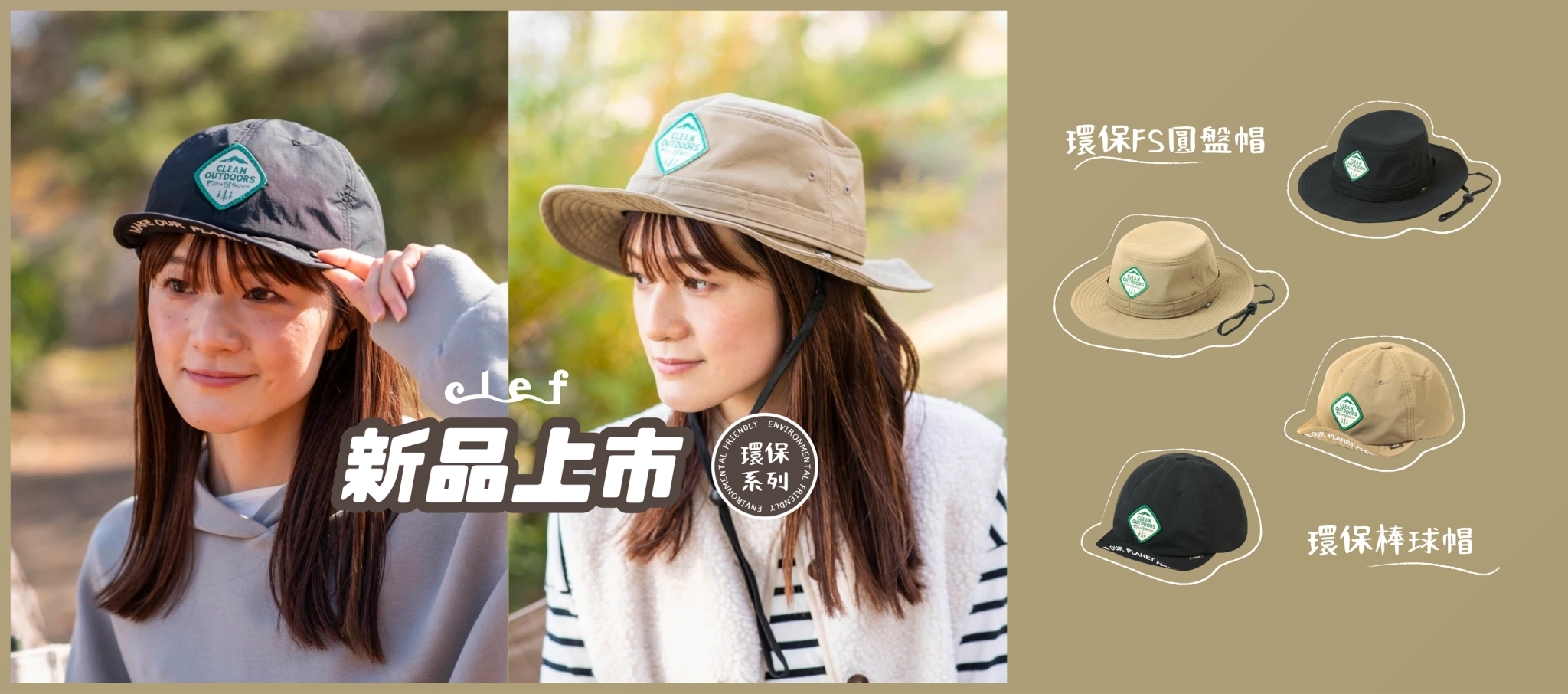 環保材質,日本製造!為實現永續發展,Clef規劃「綠色製造」主題系列,此款Clef FS圓盤帽,採用日本環保材質製造,傳遞著Clef熱衷戶外活動的品牌精神。