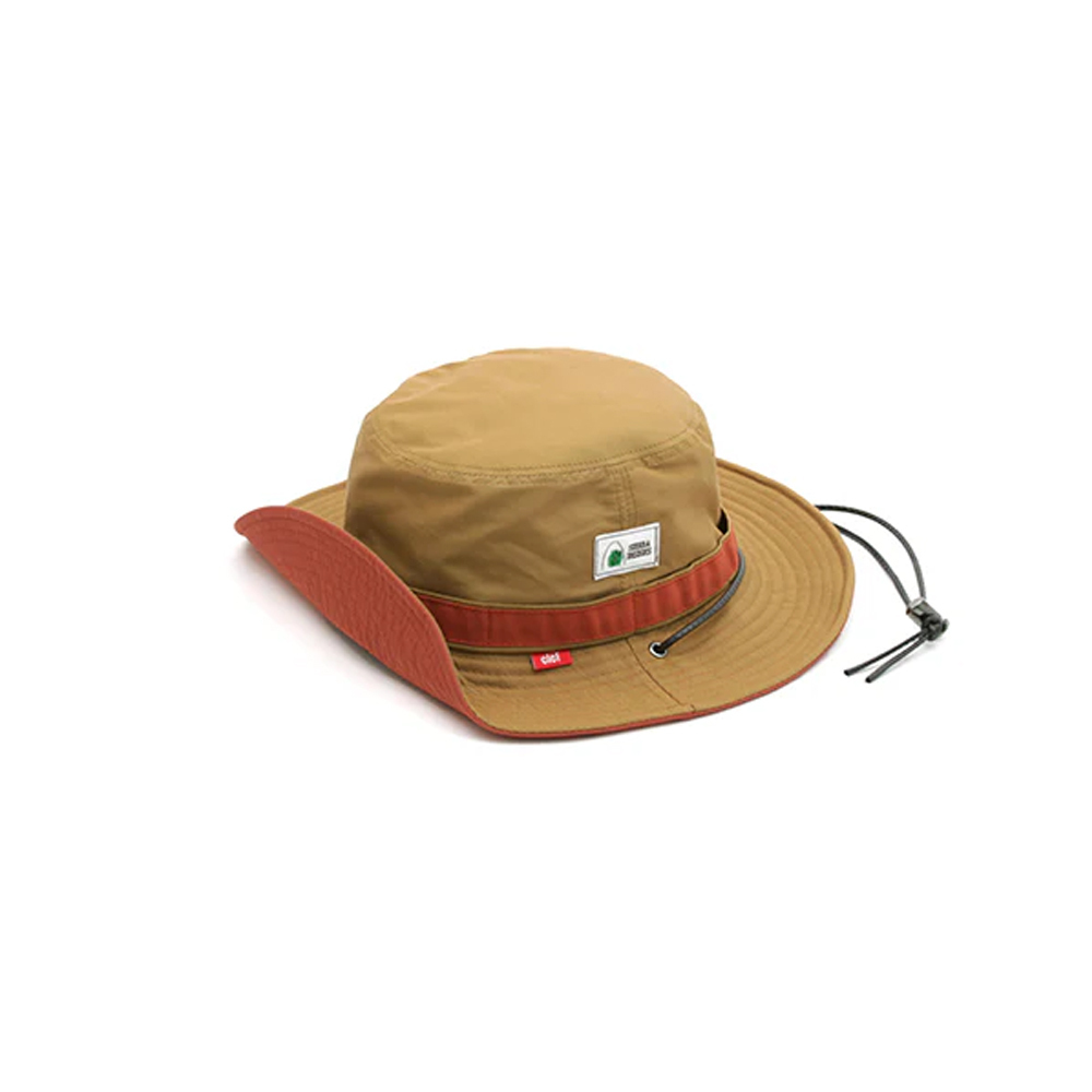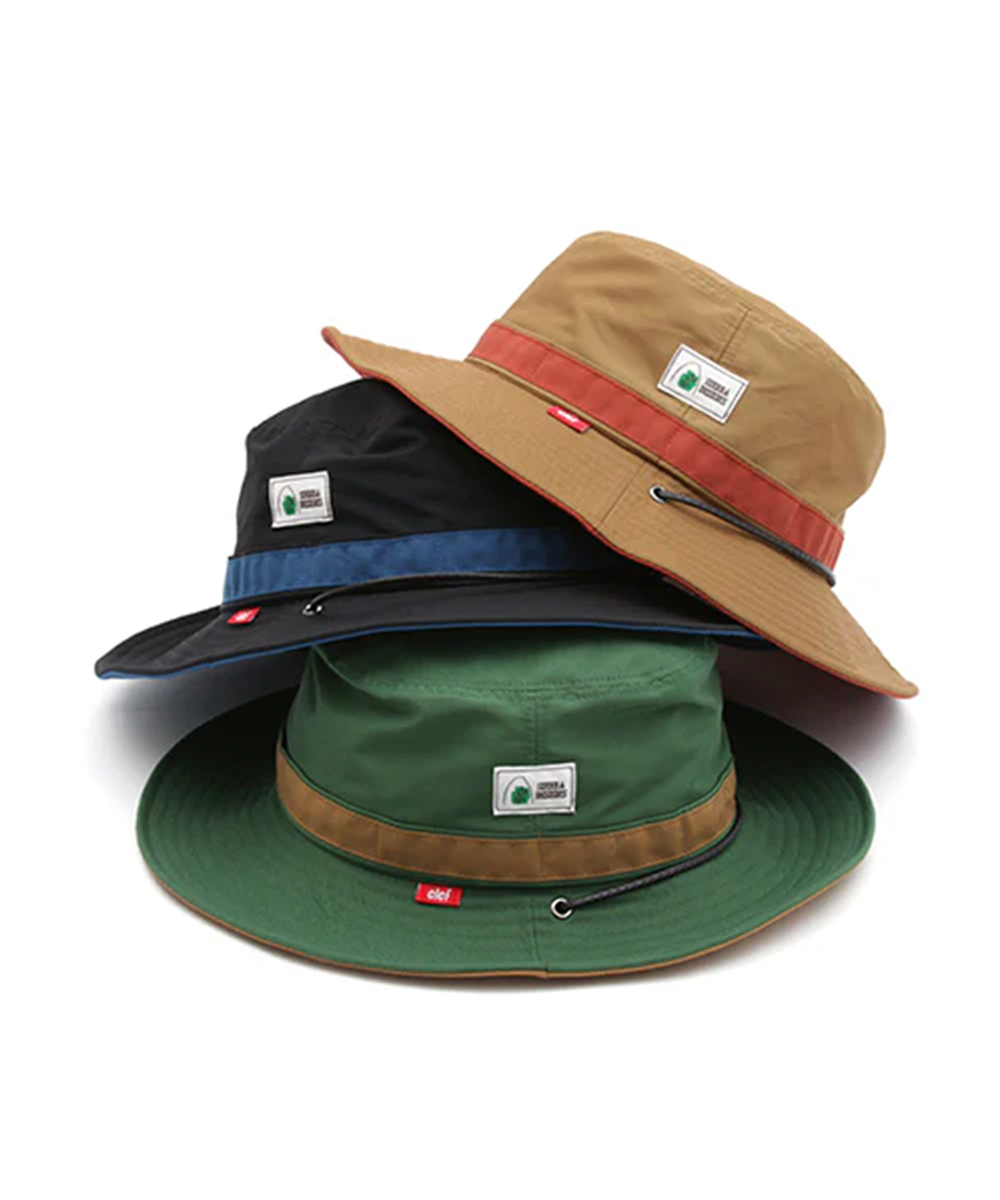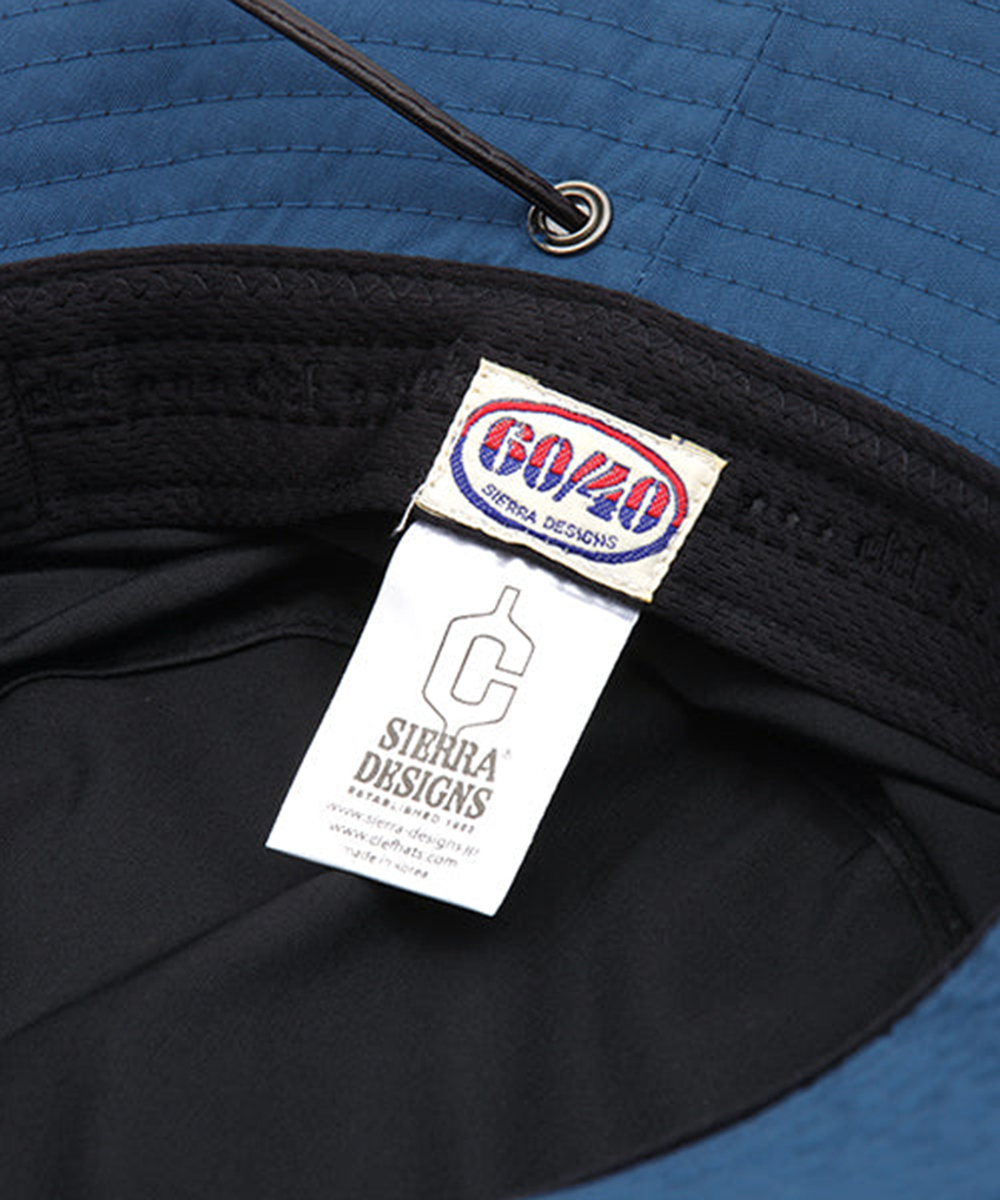 Sierra Designs 與 CLEF 聯名推出的戶外機能帽款 - SDC002聯名款60/40探險漁夫帽,採用 Sierra Designs 最具代表性的 60/40 交織布料(棉 60%/尼龍40%),與 CLEF 街頭戶外美學共同攜手打造。具備出色的防潑水與透氣性能:當棉料吸水膨脹,織眼被堵住水流受阻;而尼龍線則提供耐磨、抗撕裂能力。