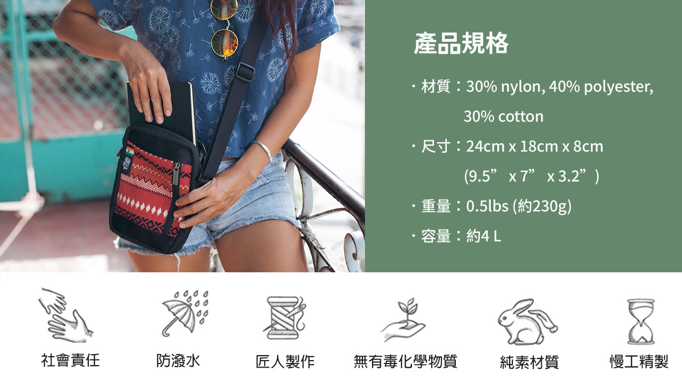 輕便實用的日常肩背包,名稱「Chaalo」在古茶拉底語(印度地方語言)意為「讓我們出發吧」,完美詮釋了此款隨行包的設計理念——隨時準備出發!便於隨身攜帶的尺寸,可放進如護照、錢包、手機、筆、旅行證件和其他適合旅途中所需小物,是隨身收納的好夥伴。