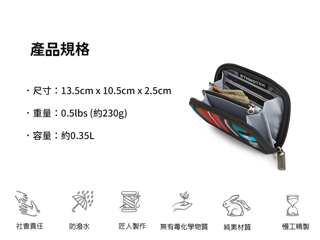 l 中央拉鍊口袋,專為放置硬幣、零錢設計