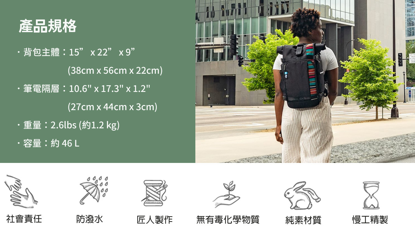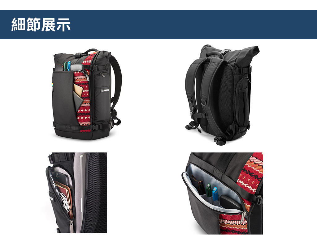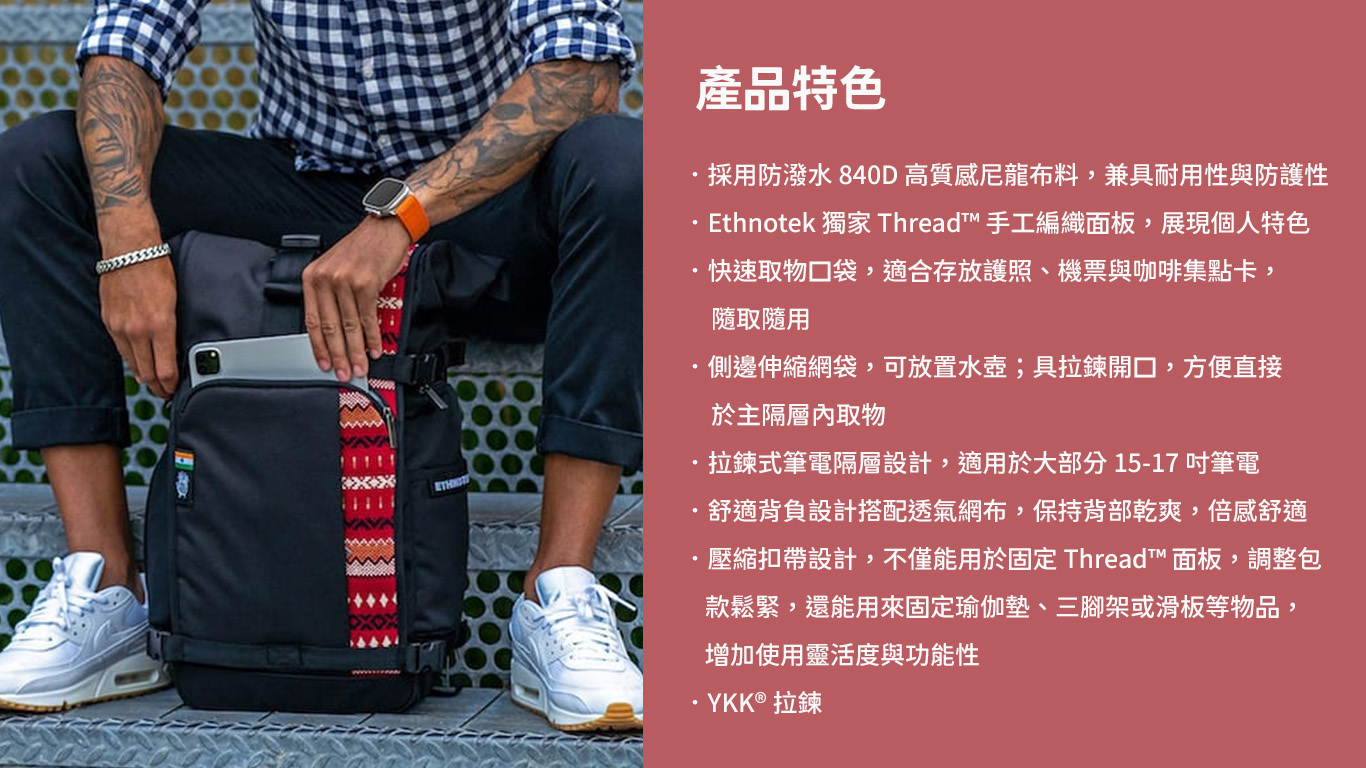Ethnotek Raja 46L Bantam 旅行背包,專為長途旅行而量身打造。大容量 46L的可捲式開口設計,足夠容納一週左右的行李裝備;內置加厚筆電隔層,可放置15-17吋筆電,搭配側邊拉鍊開口設計,讓你不用卸下背包即可快速取出筆電,方便通過機場安檢或隨時拿取背包內物品。