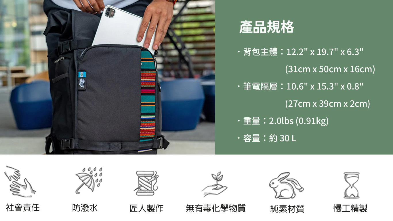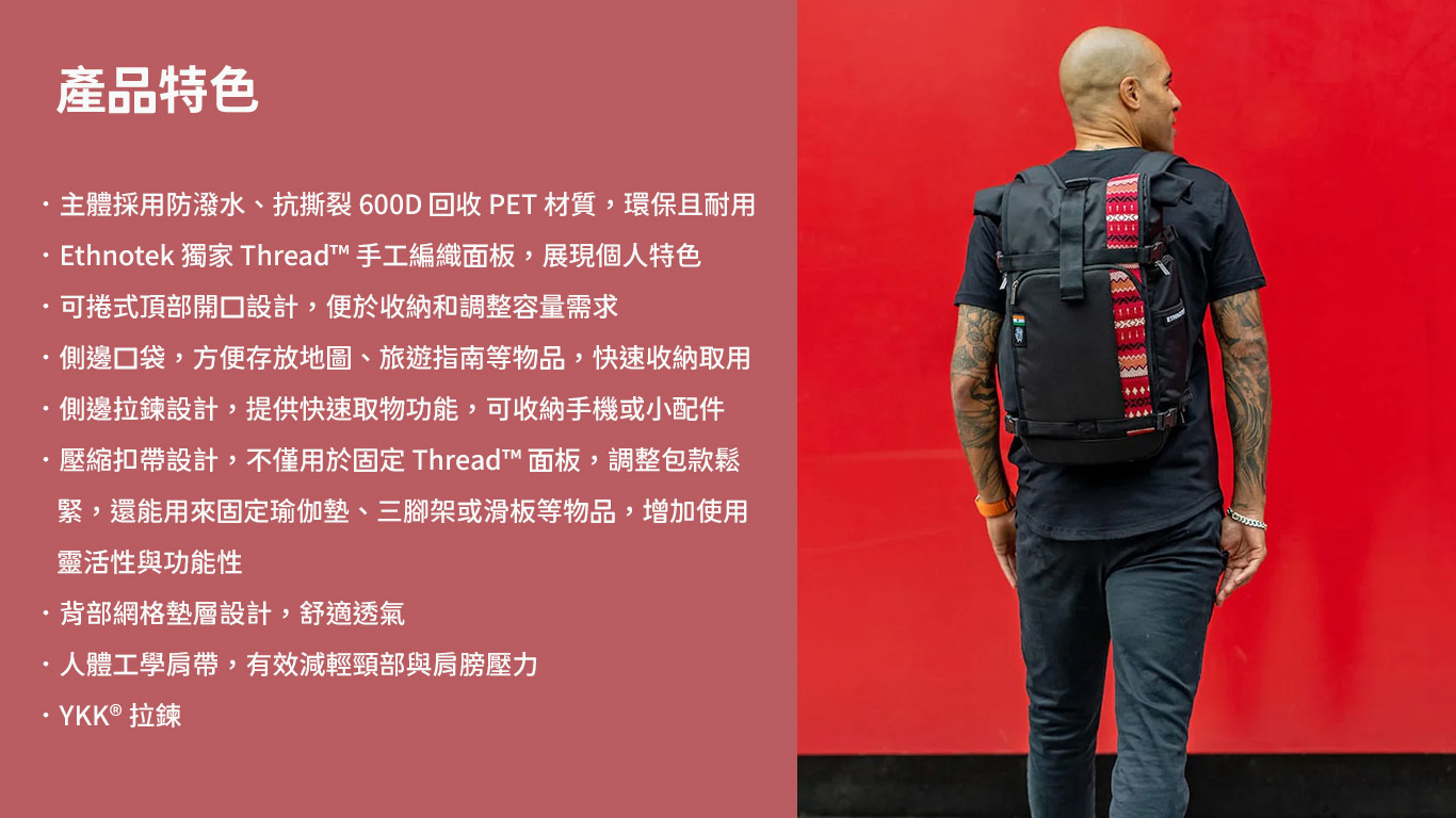 Ethnotek背包,以獨特時尚風格支持傳統工藝,同時也為地球永續發展貢獻一份力量!Raja Lite Bantam系列背包融合創意與實用性,是日常使用及旅行探險的理想裝備。