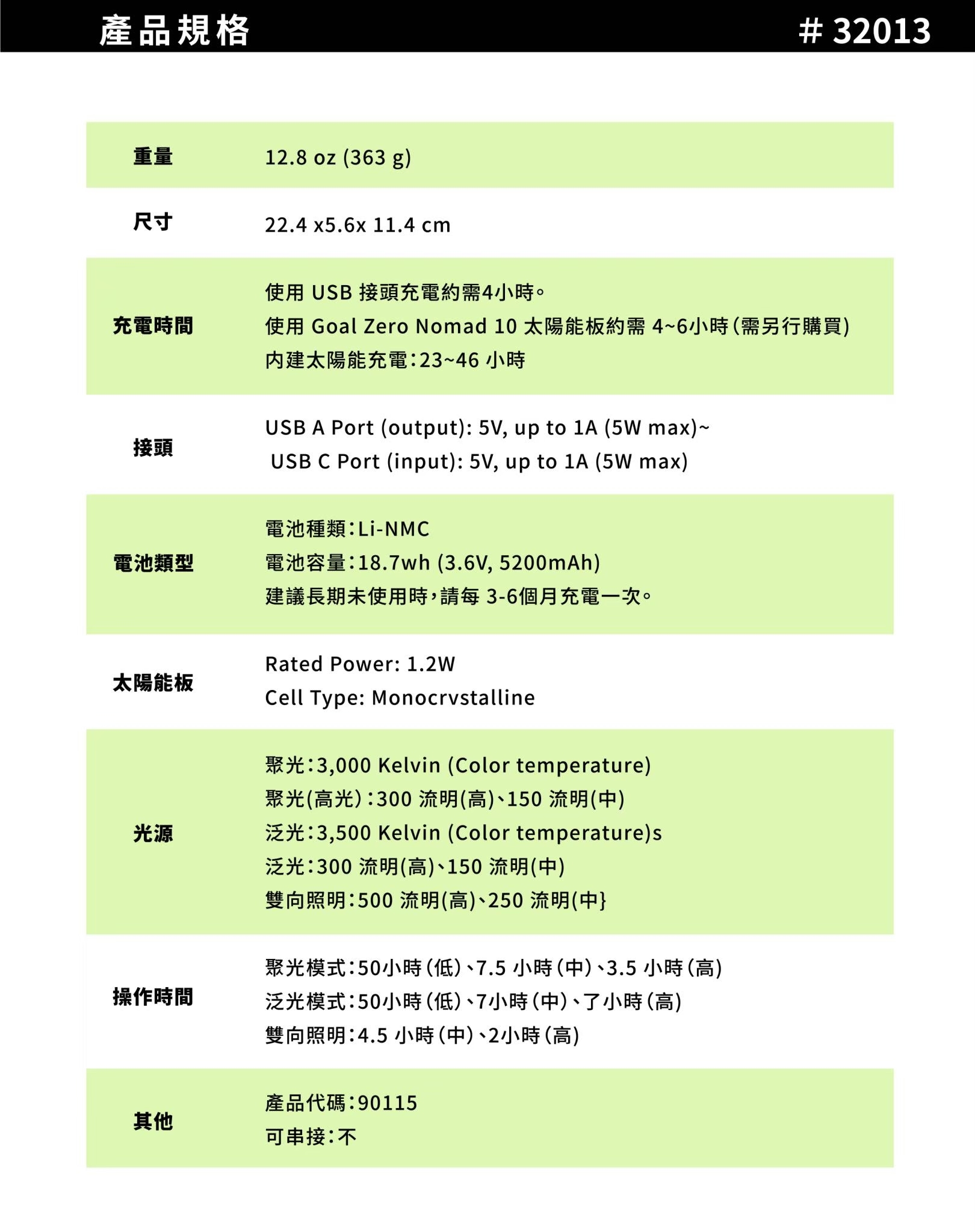 l 提供高強度時的60流明可用光,及最高達35小時(低光源)的使用時間。