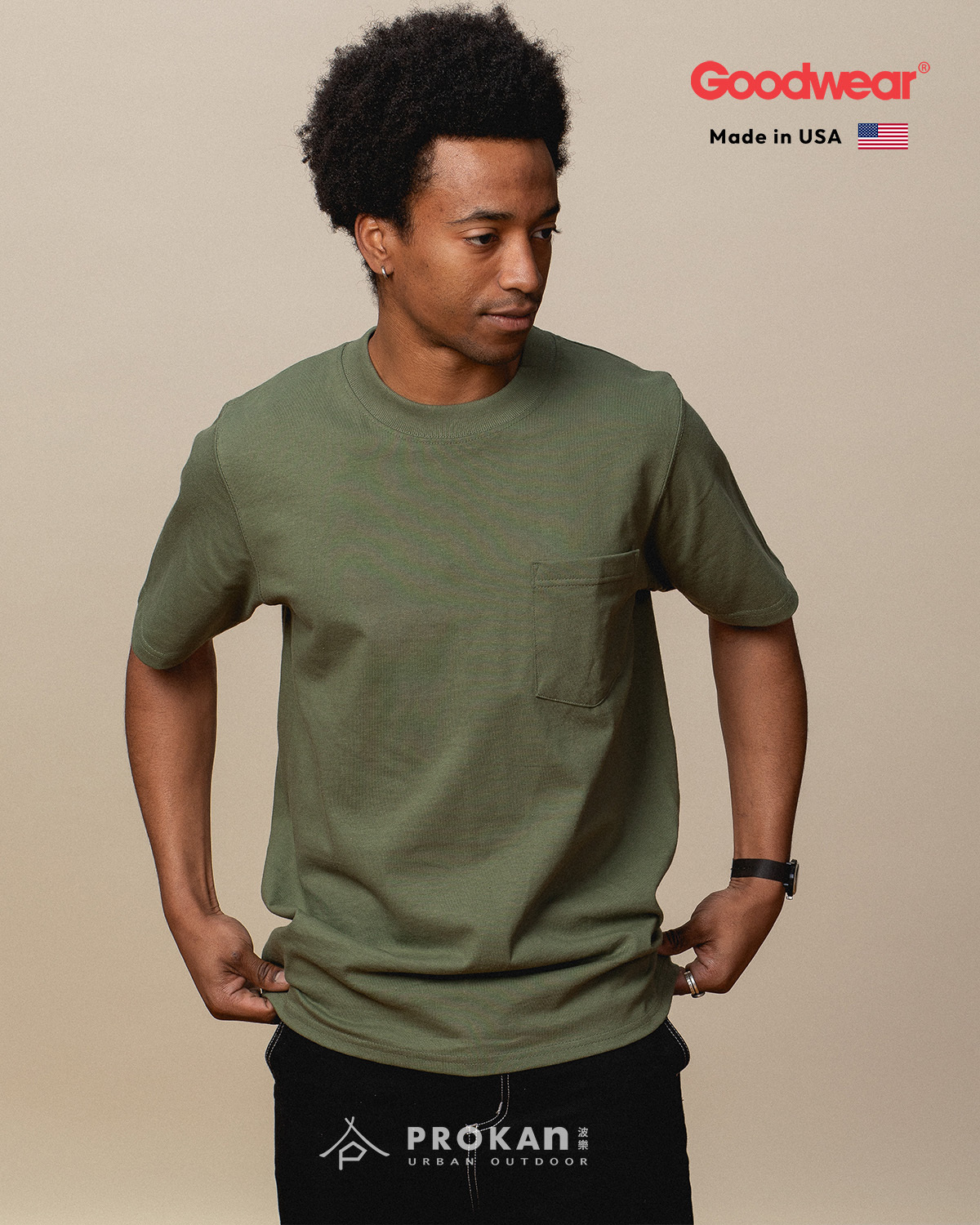 【Goodwear 美製圓領口袋短T】做工紮實搭配精細剪裁設計,從棉花到生產均符合美國製造MADE IN USA的高品質標準。男女均可穿,多色可選。