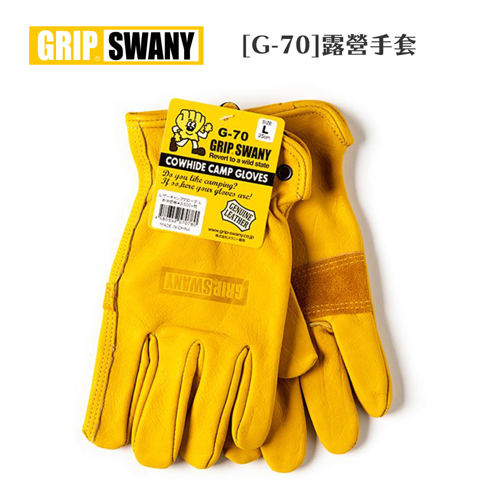 日本 GRIP SWANYG-70 全牛皮露營手套,採用100%牛皮1.3mm優質皮革材質,柔軟且堅軔,透氣耐用又靈活好戴,具備隔熱功能,非常適合戶外露營或機車騎乘時使用。