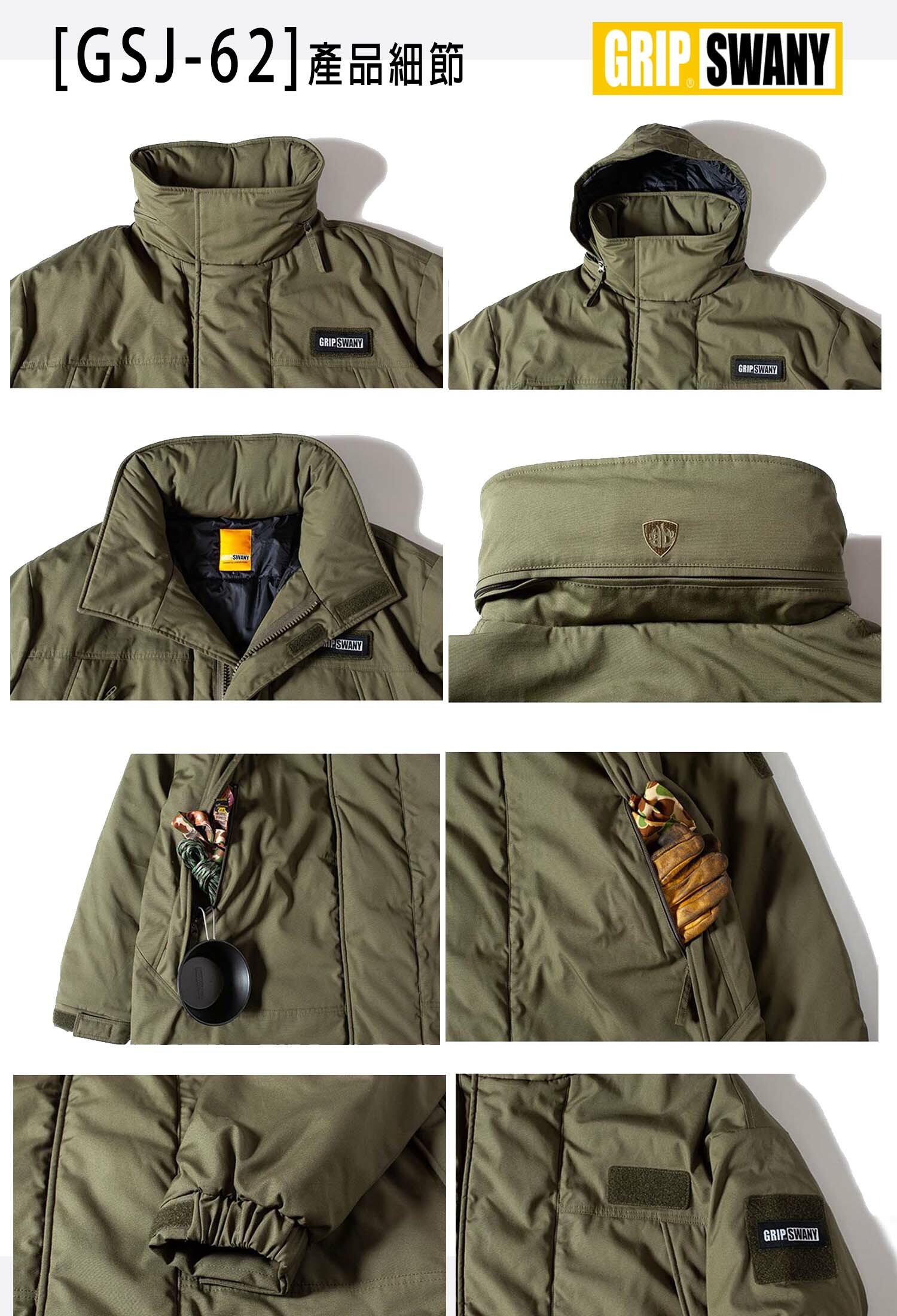 2021年Grip Swany秋冬新款,一款採用阻燃軍用材質 BRAZE SHIELD® 製成,具TAKIBI難燃特性的戶外長版大衣外套。中層採用具備與羽絨相同保暖性的THERMOLITE®(保溫纖維)材質,左右兩側及內裡均附有大口袋,專為收納手套、私人物品等而設計。