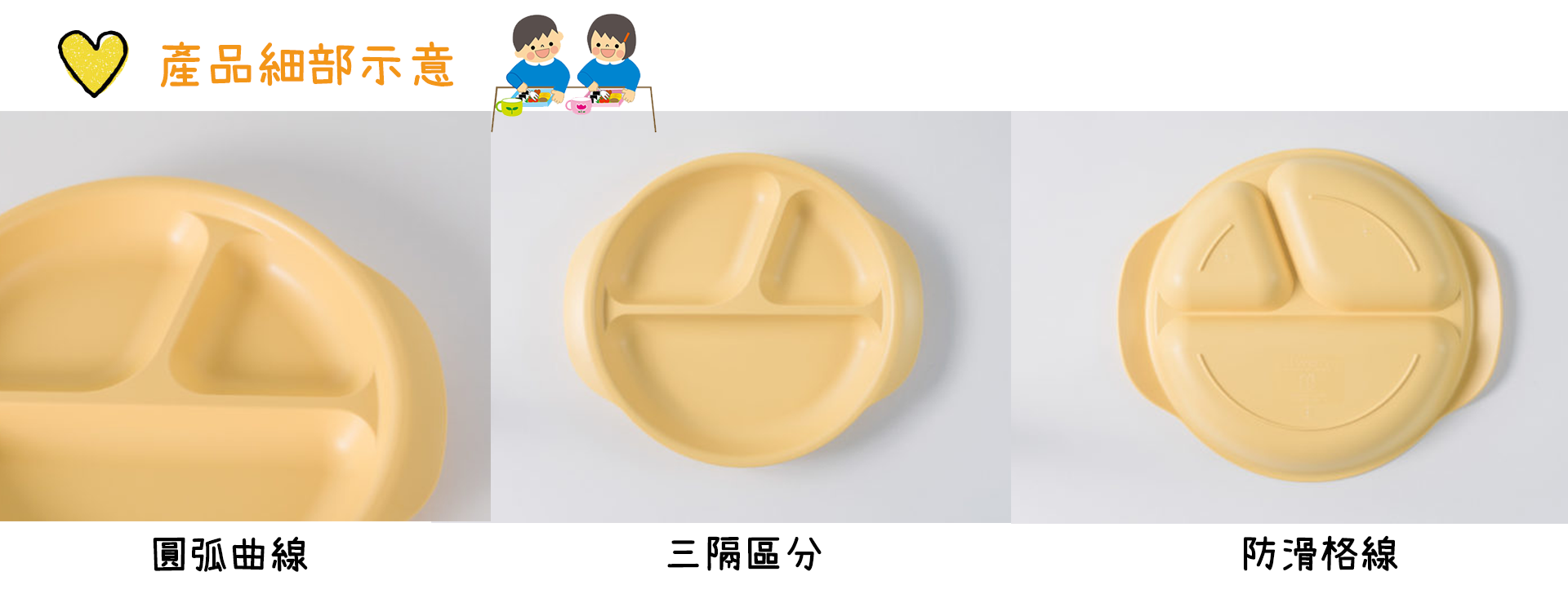 餐盤分為3個部分,讓媽媽將營養滿點的食物作區隔,澱粉、蛋白質和蔬菜一樣都不少,從寶寶離乳時期到幼兒學習用餐階段均長期適用,粉嫩色系的餐盤更能吸引寶寶目光,引起興趣。
