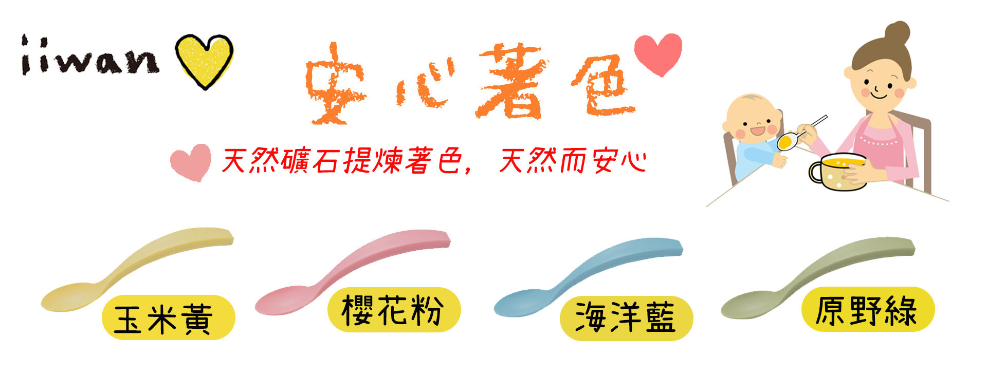 iiwan特殊手柄曲線造型設計專為嬰幼兒小巧的手掌尺寸設計,讓寶貝容易抓握輕鬆舀取食物,特殊的曲線設計讓湯匙平放在桌面時易於拿取,一點一滴培養孩子自信心,也讓用餐變得更有趣。