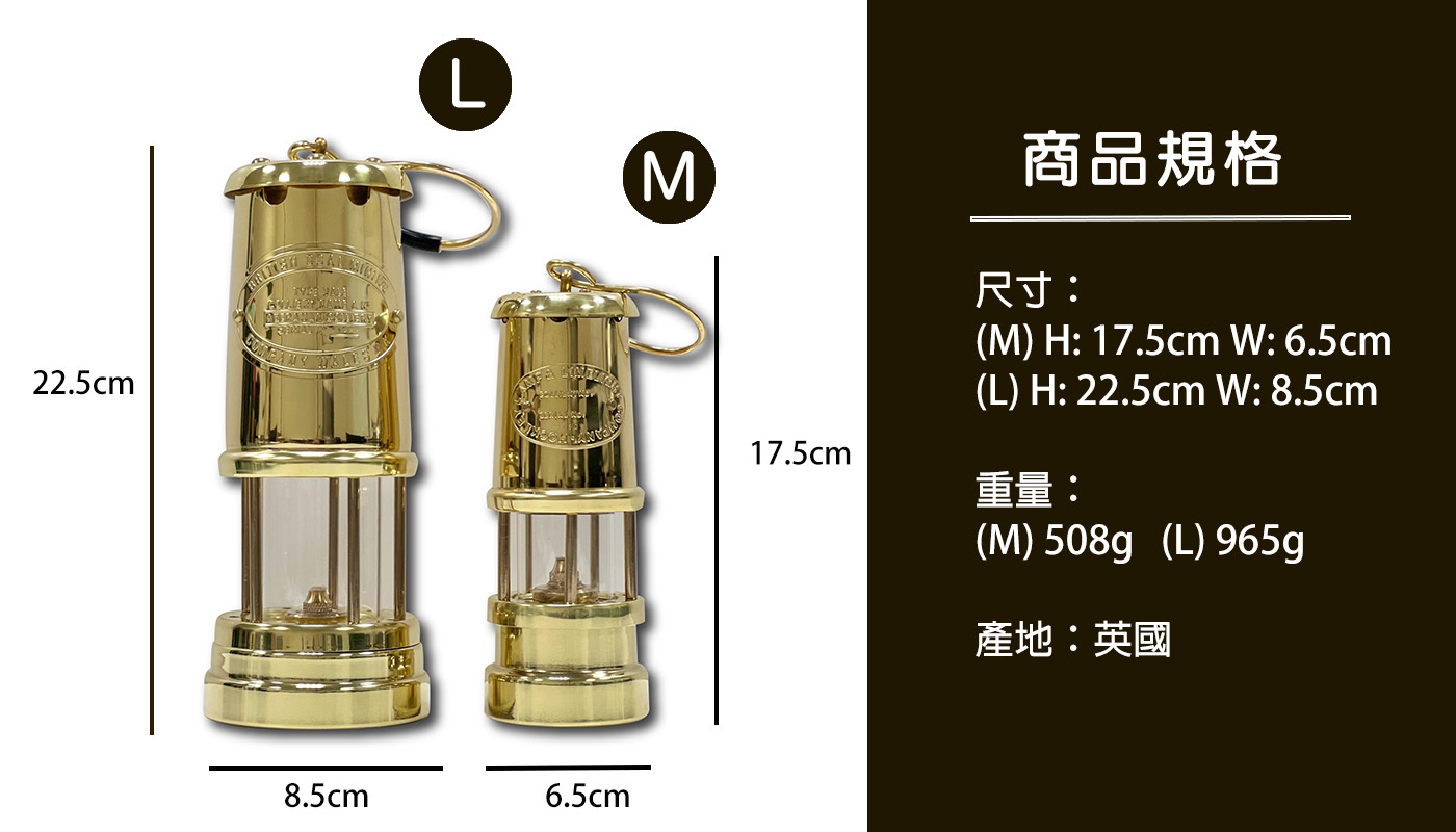 一款延續時代傳承的英式復古礦工油燈,黃銅材質古典優雅,柔和光源增添了溫馨氛圍;復古雅致造型,除了戶外露營活動使用,擺在居家客廳、餐桌或庭院,即便熄燈狀況下也有著強烈存在感,經典耐用。