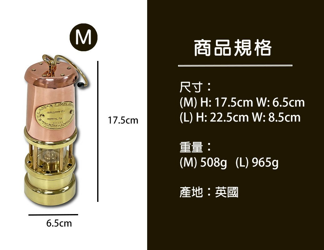 一款延續時代傳承的英式復古礦工油燈,黃銅材質古典優雅,柔和光源增添了溫馨氛圍;復古雅致造型,除了戶外露營活動使用,擺在居家客廳、餐桌或庭院,即便熄燈狀況下也有著強烈存在感,經典耐用。