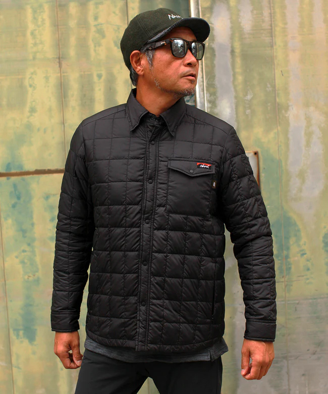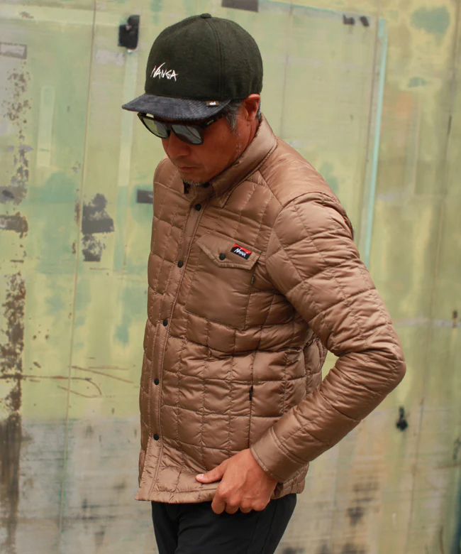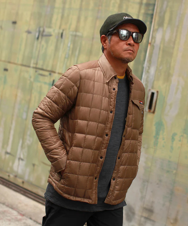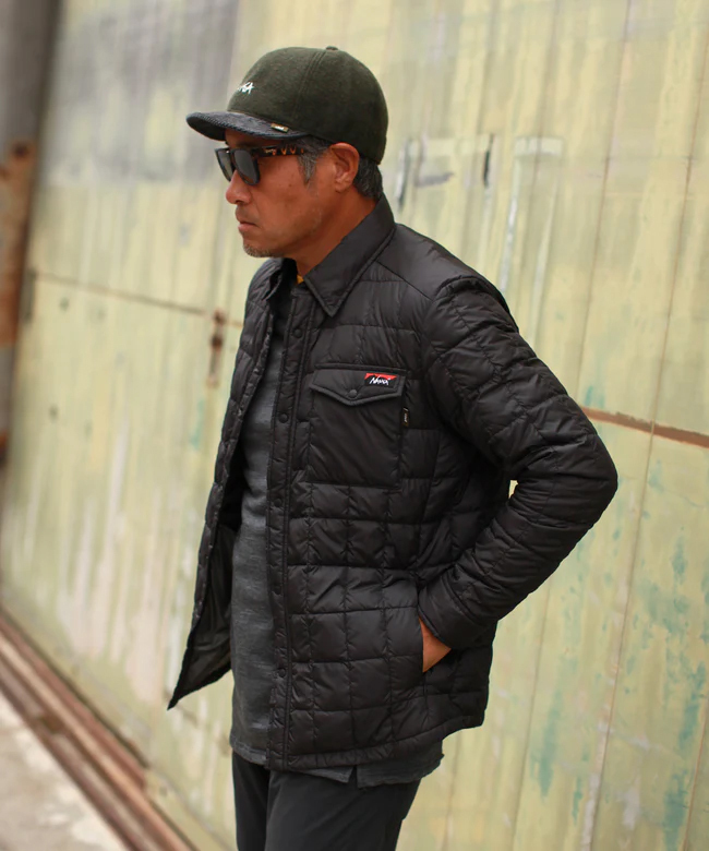 這款羽絨襯衫響應 CLEF「Clean Outdoors」 計畫,並與 NANGA「Re:ACT Down」環保羽絨再生計畫合作。