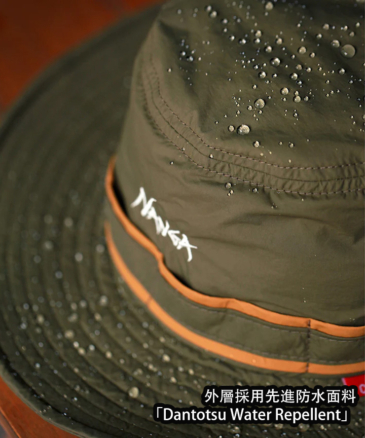 日本製造! 全新【NANGA】×【CLEF】聯名款DTT防潑水探險漁夫帽,外層表面採用先進的最新防水面料「Dantotsu WaterRepellent®」,舒適耐用且防水。Dantotsu Water Repellent® 運用於雨傘和雨衣製造,為一款可以長期使用的功能性面料,即使經過100次清洗仍能保持抗水性。