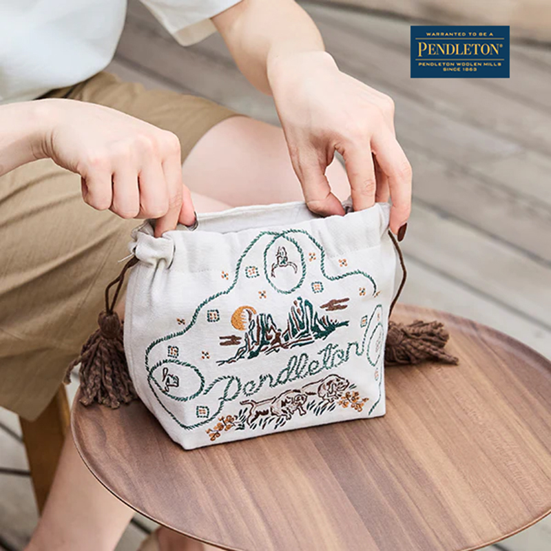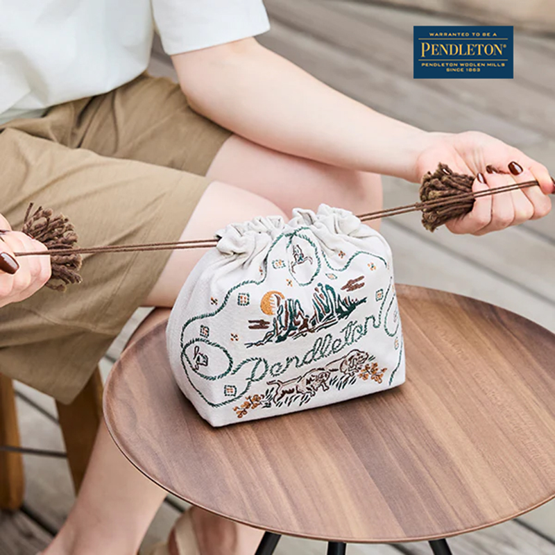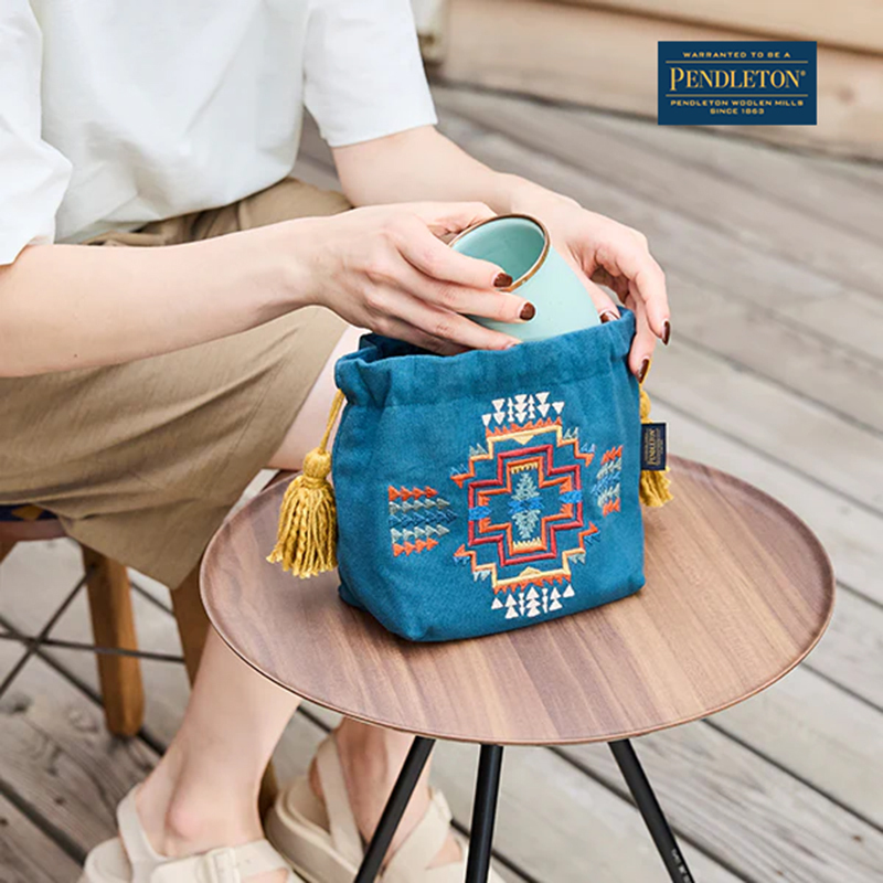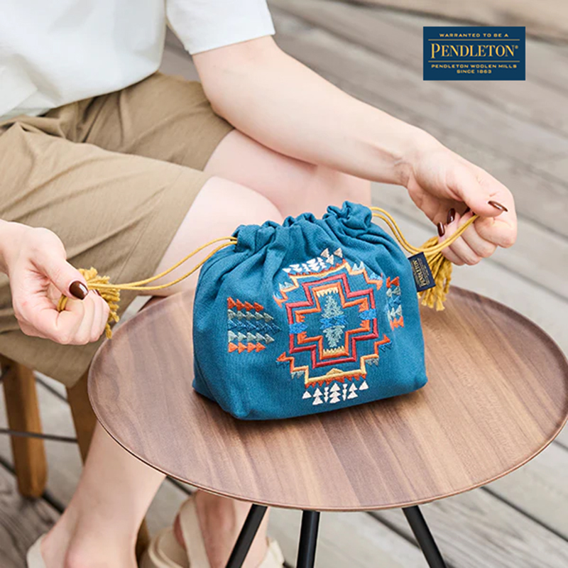 一款搭配PENDLETON 獨家圖騰設計的精緻刺繡束口袋(收納包),容量大小適中,實用的收納空間,讓你輕鬆收納日常所需的美妝品或飾品,隨身帶著走。