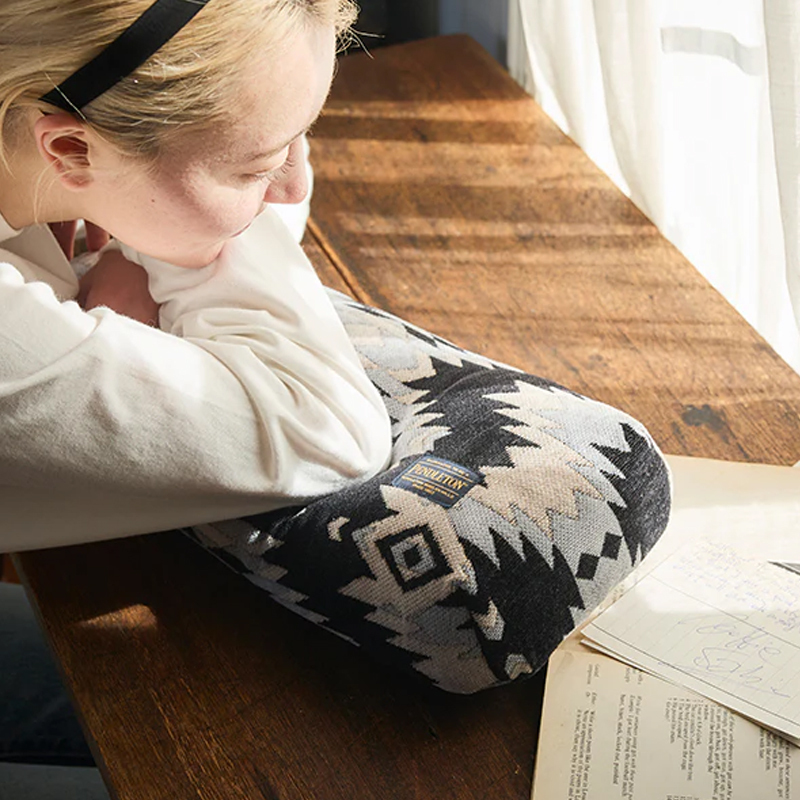結合復古美式戶外風格與實用設計的居家配件,靈感來自於林間木頭的溫暖色調與露營氛圍,外層採用 PENDLETON 經典圖騰的緹花圖案布料,能融入多種室內裝飾風格;內裡填充柔軟枕芯,提供舒適支撐與放鬆感受。