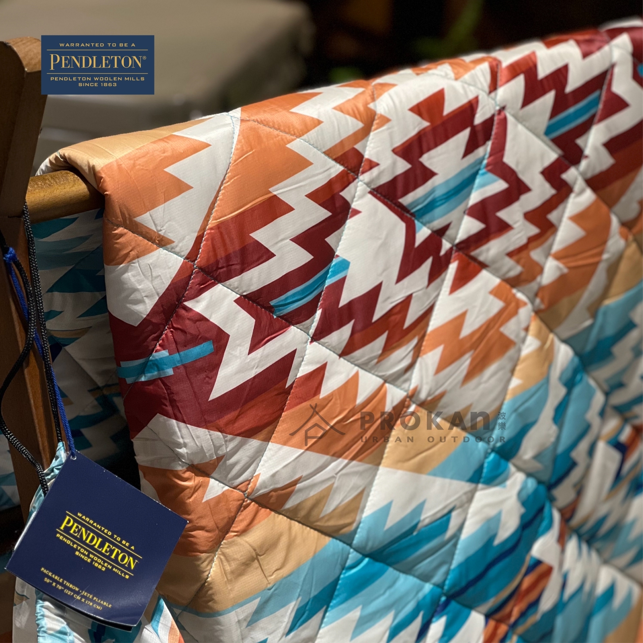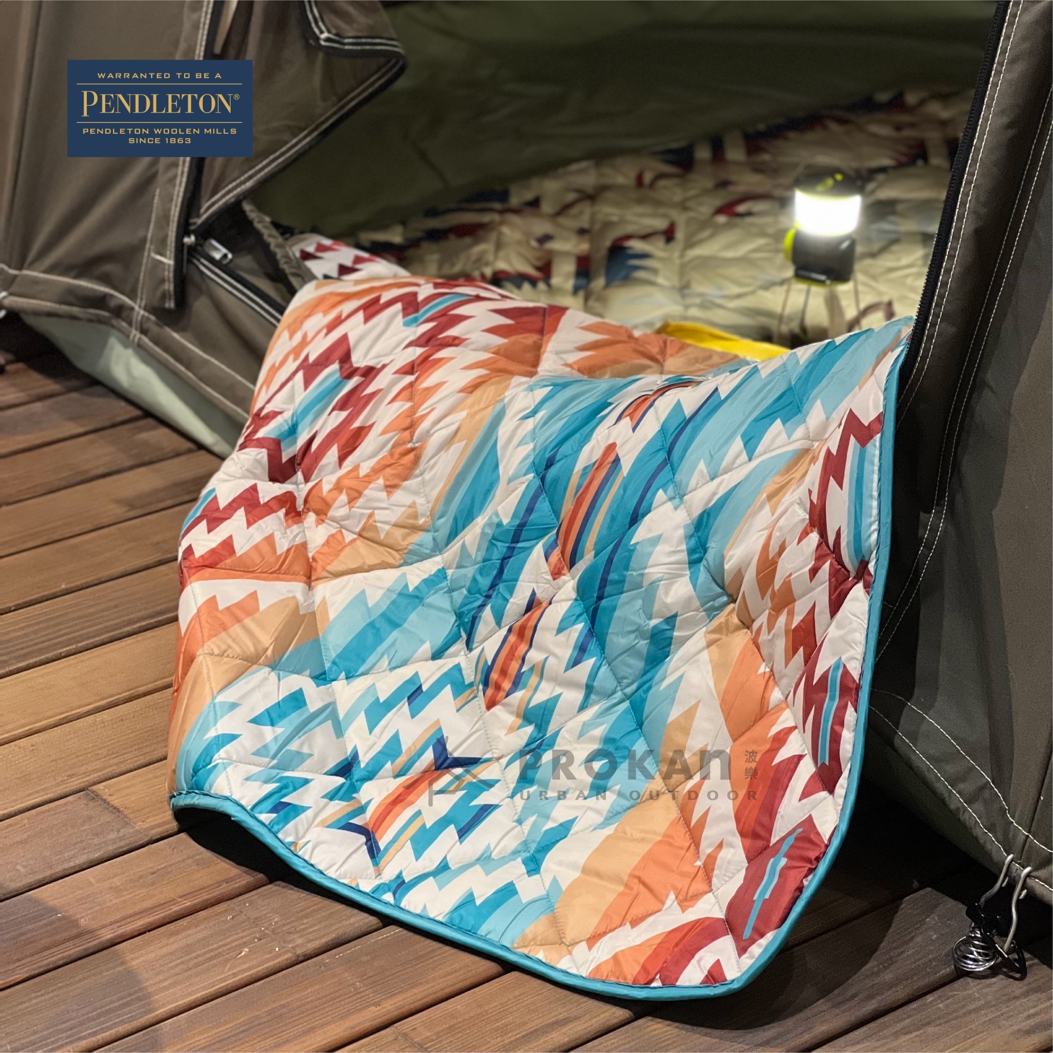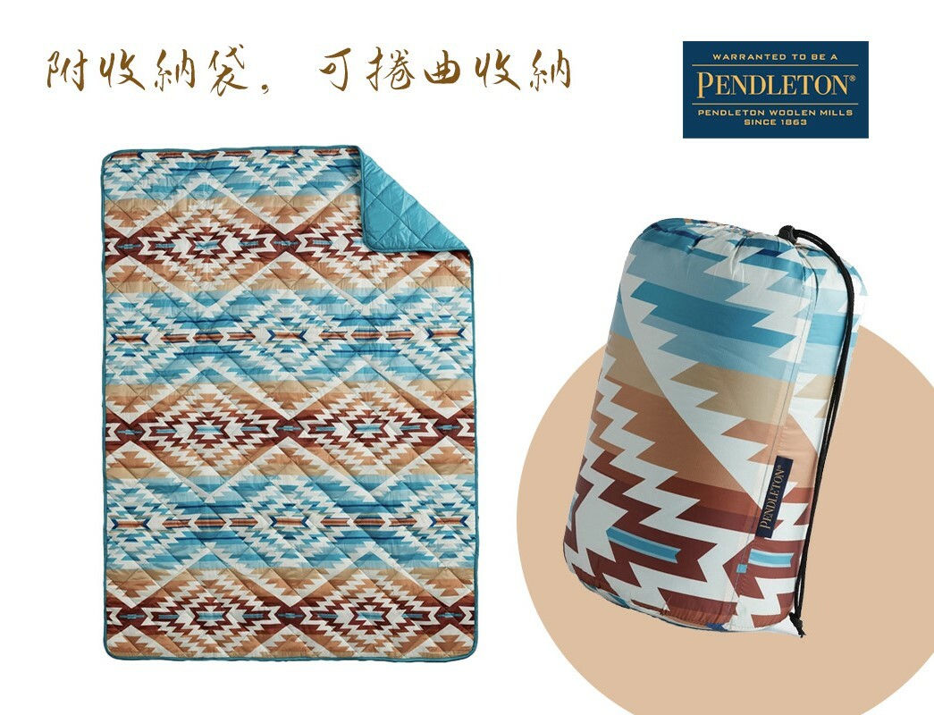 全新上市!一款帶有PENDLETON專屬圖騰的便攜式萬用毯,可捲曲收納,方便攜帶。採用回收材料製成,附收納袋及可機洗。