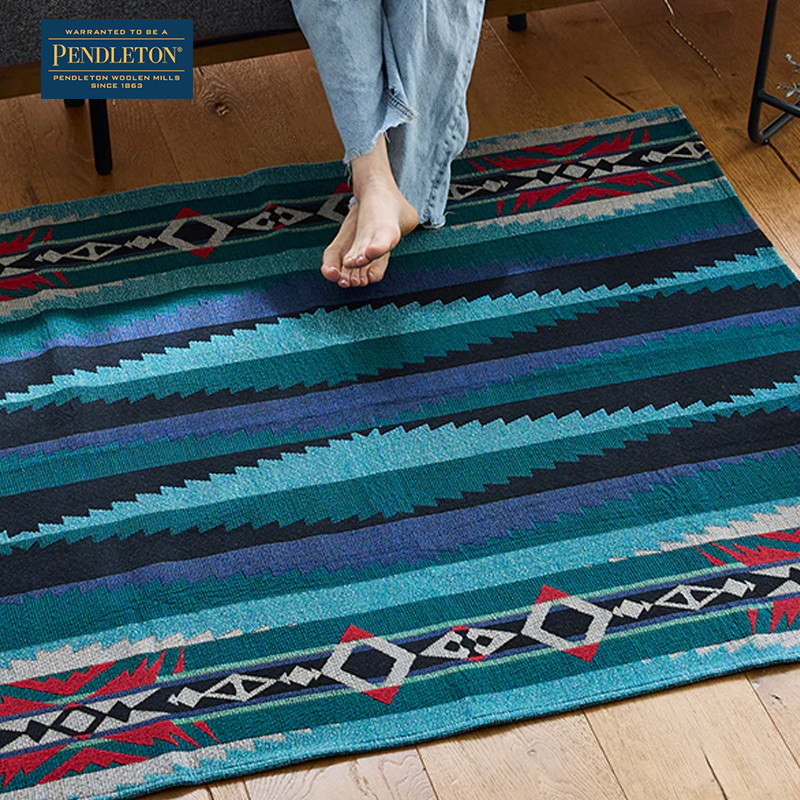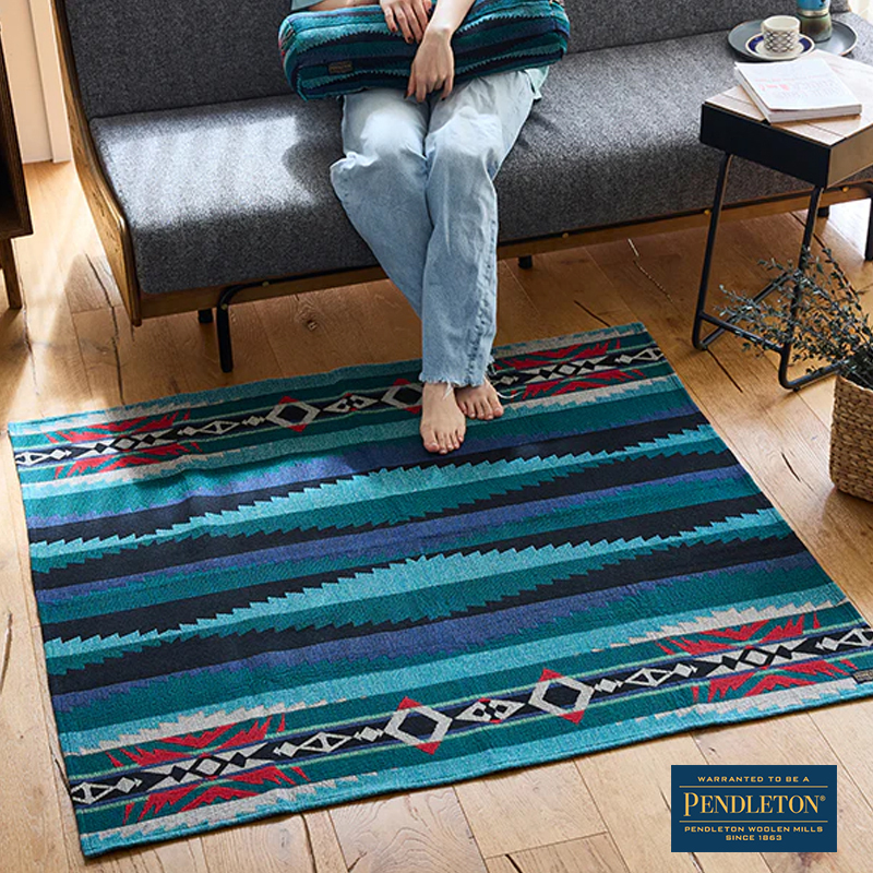 此款 PENDLETON 方形提花地墊,以美國西部大草原與野牛等自然意象為靈感,透過細緻提花織品工藝,展現出PENDLETON經典的圖騰風格。130cm × 130cm 正方形設計,非常適合擺放於客廳或臥室,成為空間中的視覺亮點。背面止滑設計,實用性與美觀兼具。