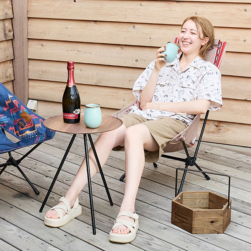 座高約 34cm,搭配營火或地墊使用恰到好處。無論是營地閱讀、煮咖啡,還是仰望星空,都是剛剛好的角度與高度,另側邊口袋亦可收納手機、小物、營地用品等。