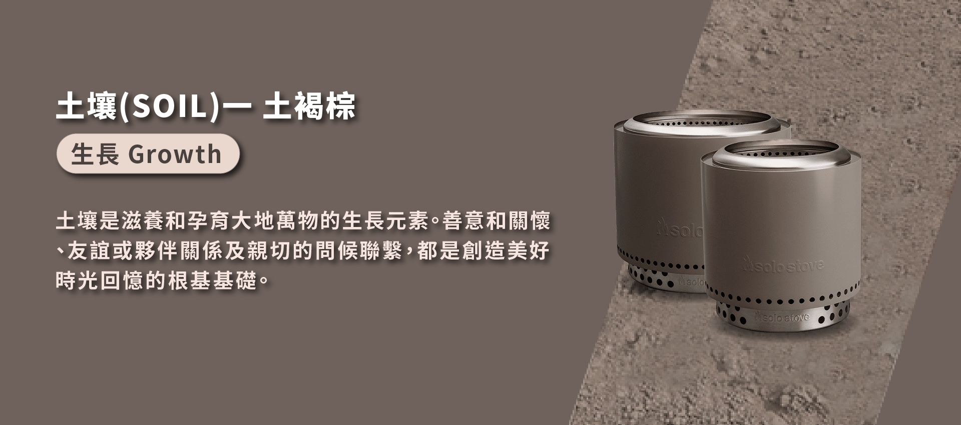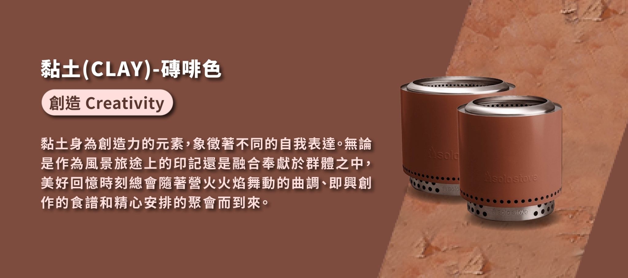 無論你在自家庭院還是山林小徑上,存在於地球的萬物都平等地擁抱著我們所經歷的一切。灰燼(ASH)、水(WATER)、沙子(SAND)、土壤(SOIL)和黏土(CLAY)在戶外空間處處可見,圍繞著營火爐周遭,在美好時光流逝中寫下一段段永恆回憶。