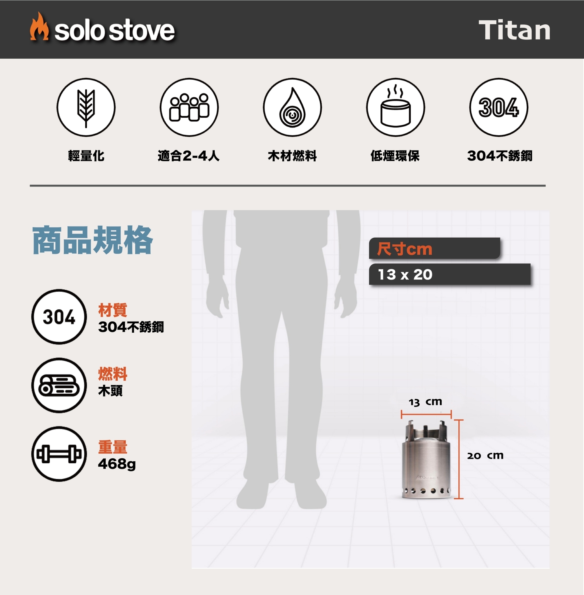 想準備二人份餐點料理?Solo StoveTitan 不鏽鋼火箭爐是登山健行、背包旅行和野外烹飪冒險的好幫手。重量僅約468g,隨時可以帶著出發旅行、溫暖沿途旅程。