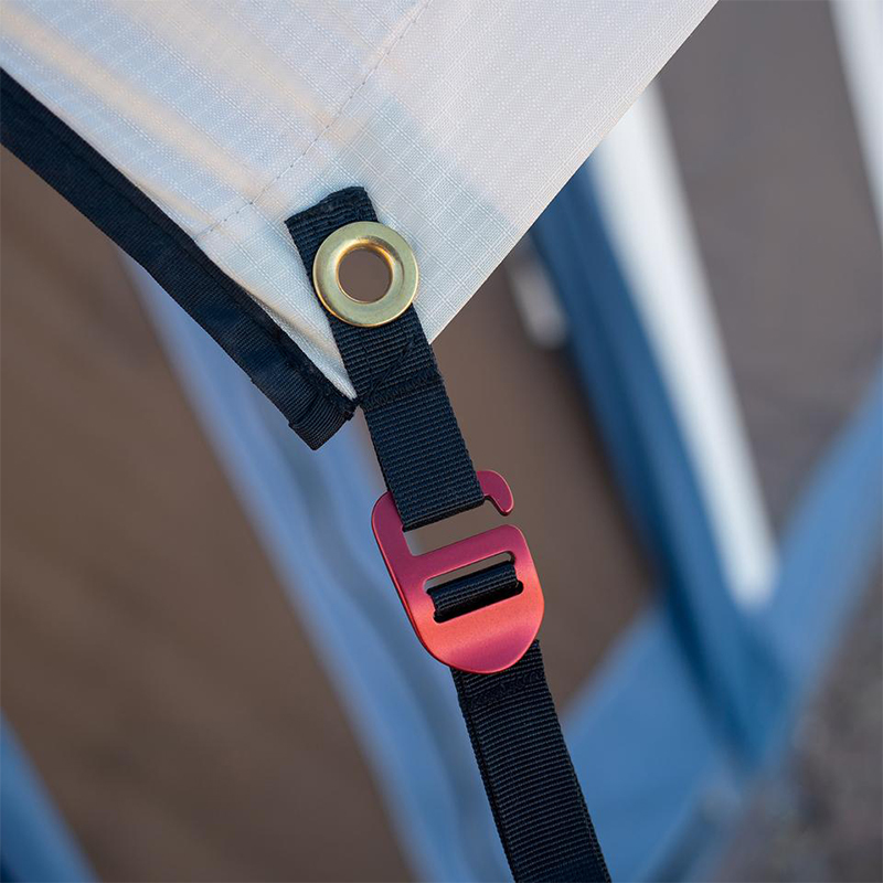 ◆透過營繩固定帶,強化帳篷遇強風時的穩定性