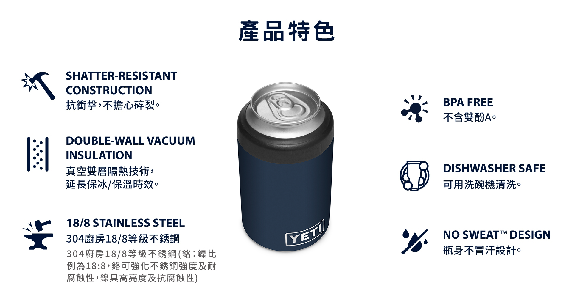 全新一代 YETI Colster飲料罐保冰杯,外觀設計多了些圓滑及墊圈材質的更新,12oz (約354ml)的適中容量用來放置汽水、蘇打水和啤酒瓶再也合適不過。獨特雙層真空結構設計,讓你不論在船上、營地或戶外,都可保持手中飲品清涼暢快,盡情享用。