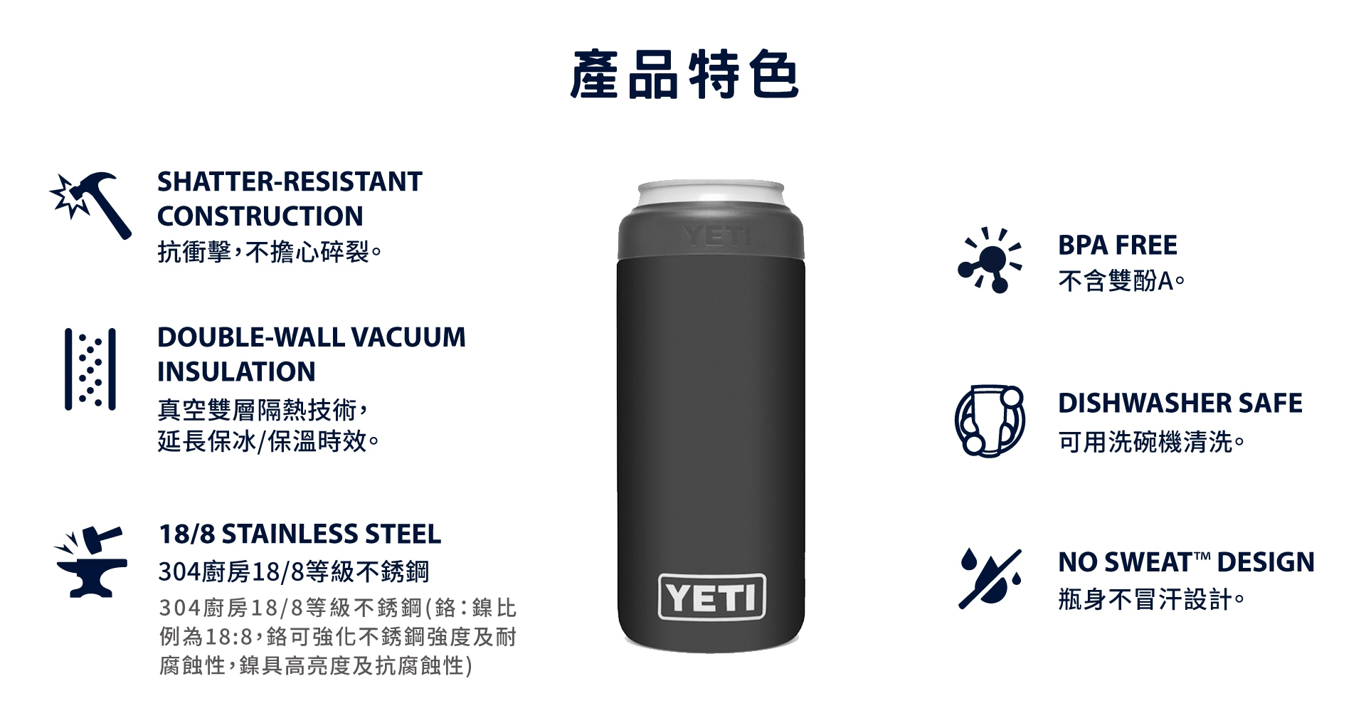 全新YETI Colster飲料罐保冰杯(纖薄款),纖細瓶身設計提供給你在炎熱天氣需要冰涼飲品的另一絕佳選擇。YETI獨特雙層真空結構和No Sweat™不冒汗設計,搭配更新Load-and-Lock™墊片技術,輕鬆將飲料罐固定到位,讓你不論在船上、營地或戶外,都可保持手中飲品清涼暢快,盡情享用。