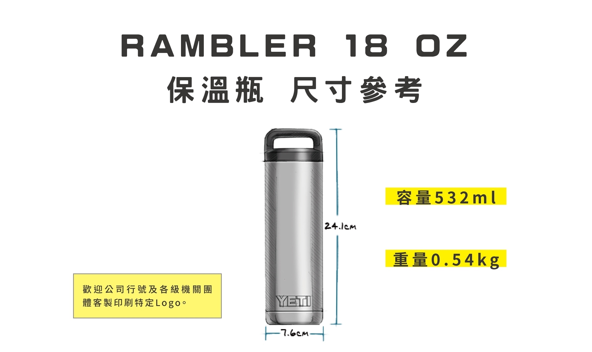 品名:【YETI】RAMBLER 18oz 真空雙層保溫瓶(吸嘴瓶蓋)