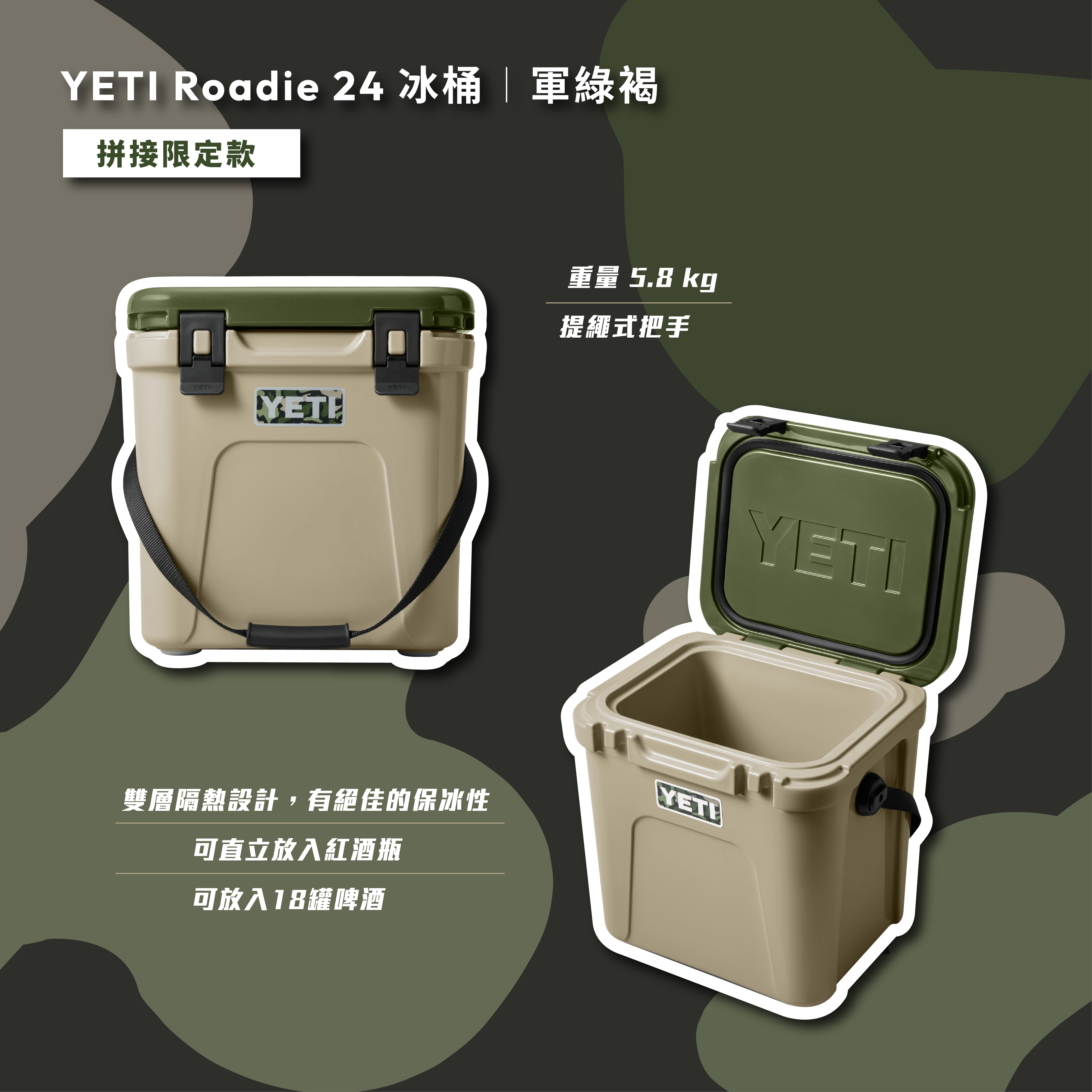全新限量款【 YETI ROADIE 24保冰桶-軍綠褐】,有著YETI最新研發薄款冰桶壁面,重量比過往減輕10%,容量卻增加了20%,也有更優於過往高於30%的最佳保冰性。整體尺寸採挑高設計,可輕鬆放進整隻紅酒/葡萄酒瓶,纖細造型更方便攜帶,放在汽車後座上也沒問題。