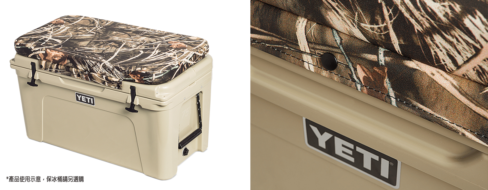YETI保冰桶坐墊,融合野外景致的迷彩款設計,為你的YETI冰桶提升更大效能。安裝時,請將所附螺絲鎖進冰桶上蓋孔洞,並將坐墊置放於冰桶上方即可。坐墊適用於YETI Tundra®型號,所有硬體配件為不銹鋼材質。