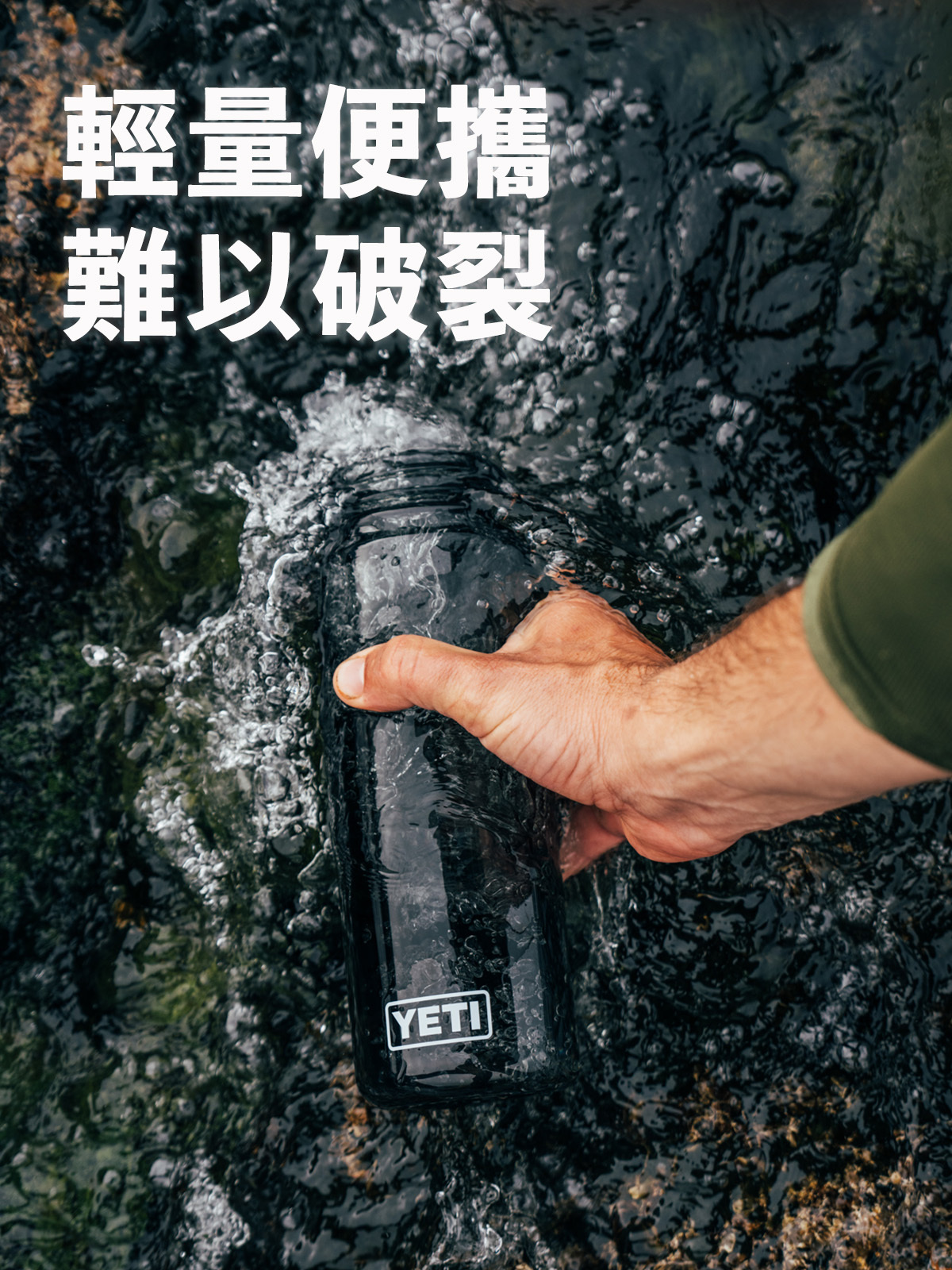 全新YETI 《YONDER 運動水瓶》經過研發團隊精心設計,不僅輕巧好攜帶、防摔不易破裂,搭配著750 ML (25oz)適中容量,讓你在旅途中或戶外活動時可適時補充水分,走得更高更遠。