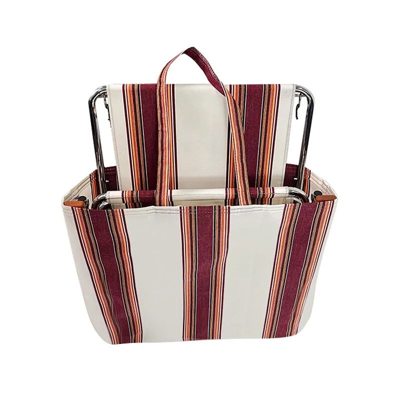 【ZipDee】戶外輕量折疊椅《寬版》【套裝組】-紅白條紋款 col. 4170