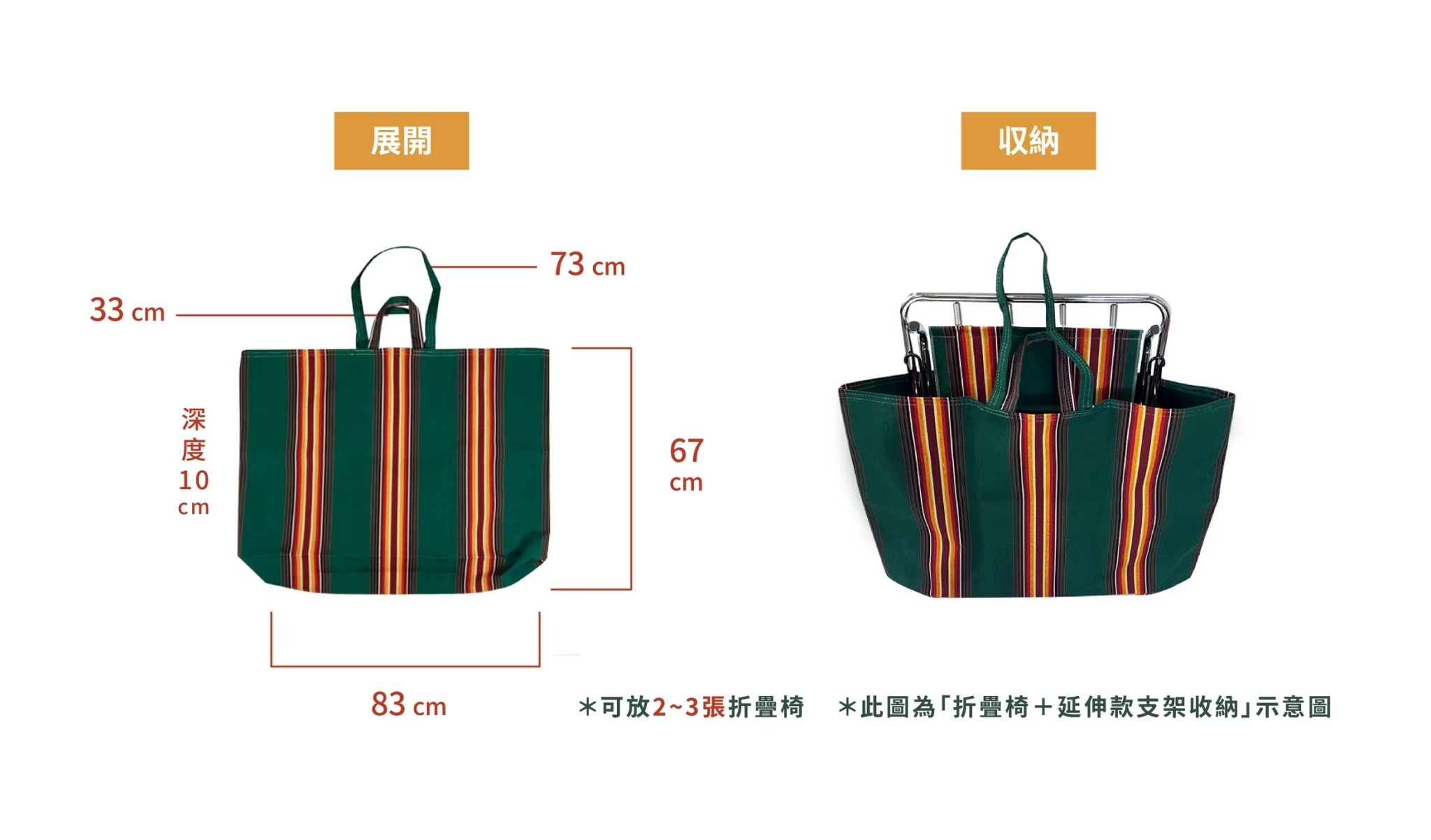 ※套裝組內容:摺疊椅、延伸支架、收納袋 各一個